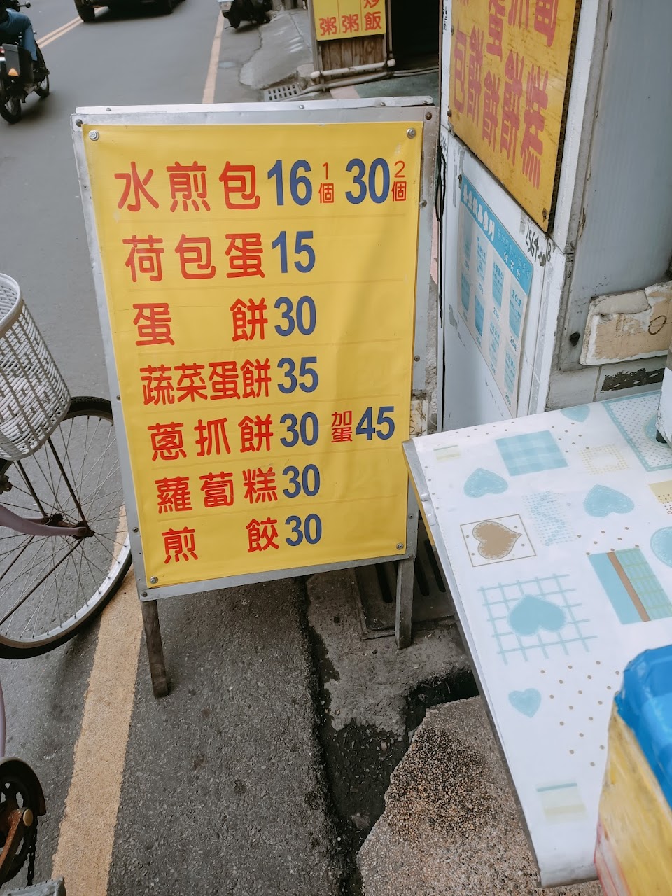 手工蛋餅皮有嚼勁,蔬菜口味是滿滿的高麗菜,搭配韭菜醬油~好吃!水煎包裡面是包高麗菜跟韭菜也不錯吃。小饅頭味道一般但是很可愛。有賣水煮蛋,對於有時候想吃清淡一點又懶得煮的人很方便~