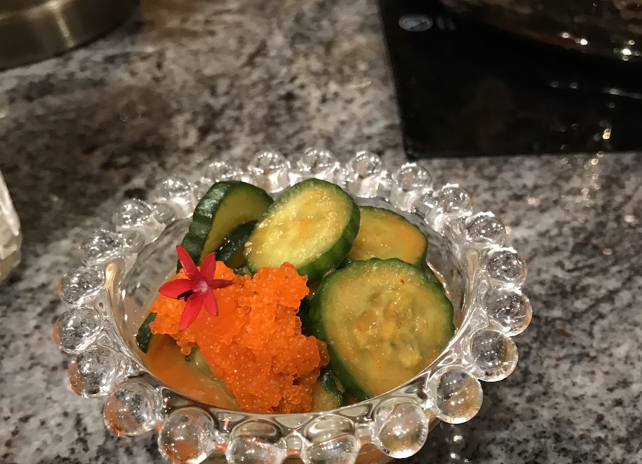 前菜有蝦卵小黃瓜。