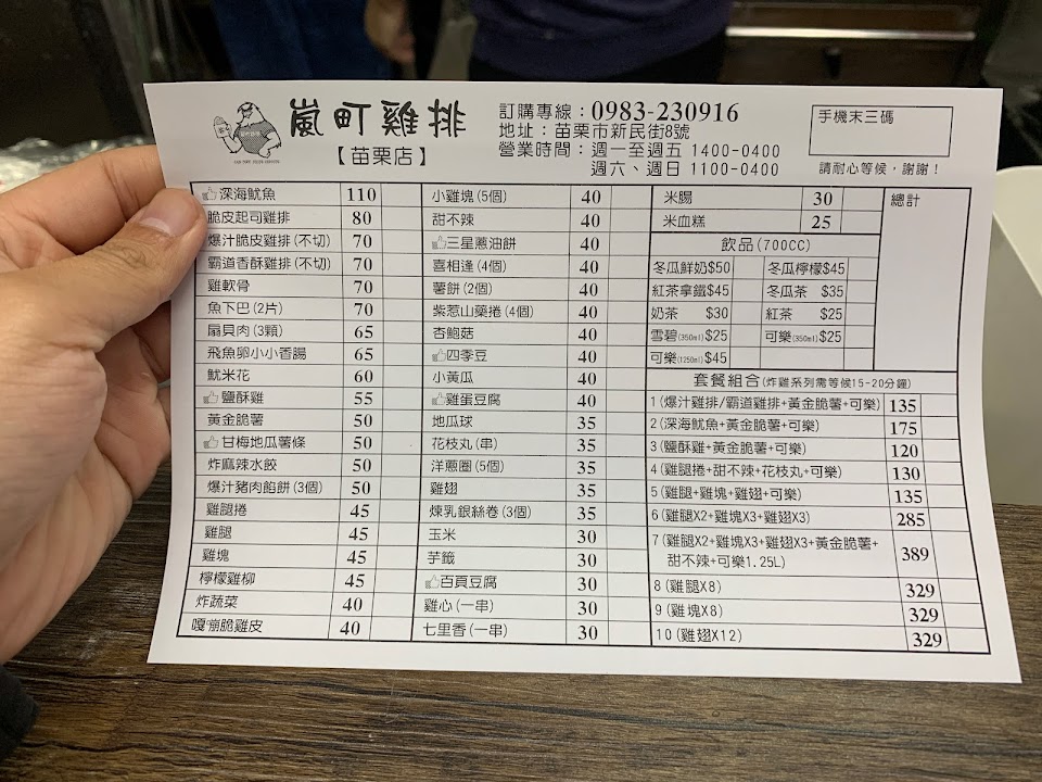 2024最新在地推薦餐廳的菜單_嵐町雞排-苗栗店的菜單、圖片