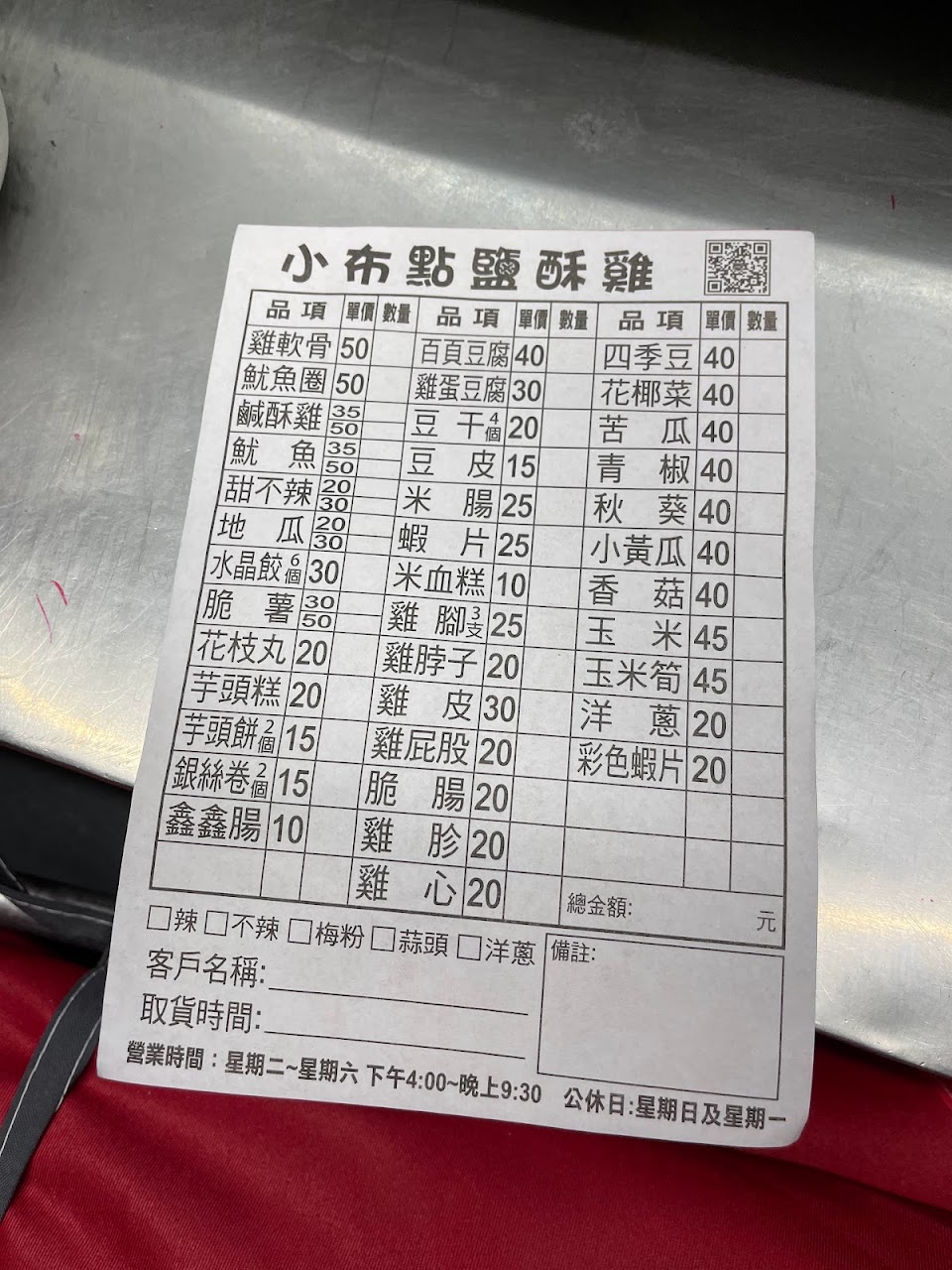 2024最新在地推薦餐廳的菜單_小布點鹹酥雞的菜單、圖片