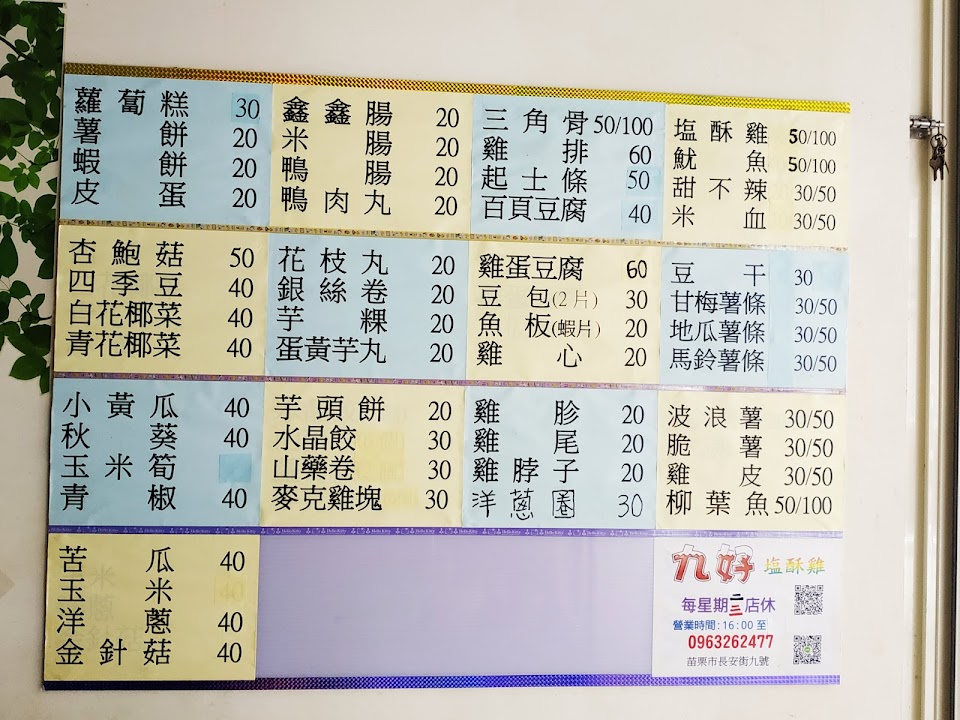 2024最新在地推薦餐廳的菜單_九好鹽酥雞的菜單、圖片