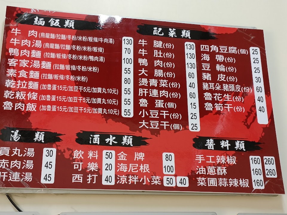 那天吃飯時想吃燙青菜 但因為不敢吃地瓜葉所以點高麗菜 然後男店員不知道是不是老闆就跟我說懂吃的人都吃地瓜葉 地瓜葉才沒有農業殘留 一聽這個我什麼都不要 意思是你們的菜都沒在洗嗎?聽起來感覺很差 再來同桌的客人點了一瓶可口可樂 一口沒喝就被農藥男店員打翻 打翻後也就剩一口 沒補償就算了也沒道歉 更扯的是結帳時我跟同個農藥店員說 不好意思我要結帳 農藥店員回:你用什麼?我問他什麼東西用什麼 他就翻白眼的大聲說 你要用什麼結帳啦 哇噻 如果你做服務業要這麼惜字如金我是覺得那你乾脆不要做服務業了吧 態度不好我當你忙 而我只是想吃個東西你嚇我幹嘛?總之我覺得東西平平粄條很油 牛肉麵 麵跟湯跟肉很棒完全各司其職完全兜不起來 而且湯還是溫溫的 在用餐時間這種品質真的很不ok 我只能說不可能再有下次了 要不是最低是ㄧ星 不然我連一星都不想給 服務 內用