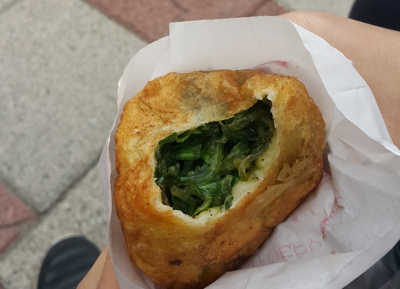 煎包裡滿滿的韮菜,蛋餅也不錯,加上一點辣椒醬更是美味