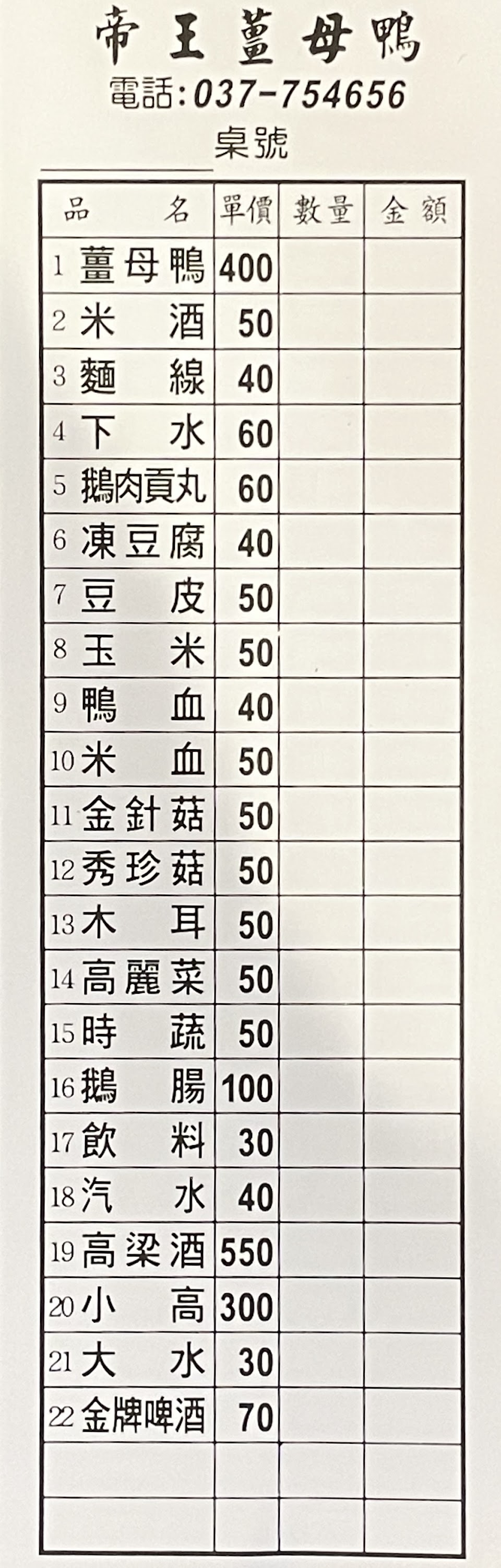 2024最新在地推薦餐廳的菜單_帝王薑母鴨的菜單、圖片