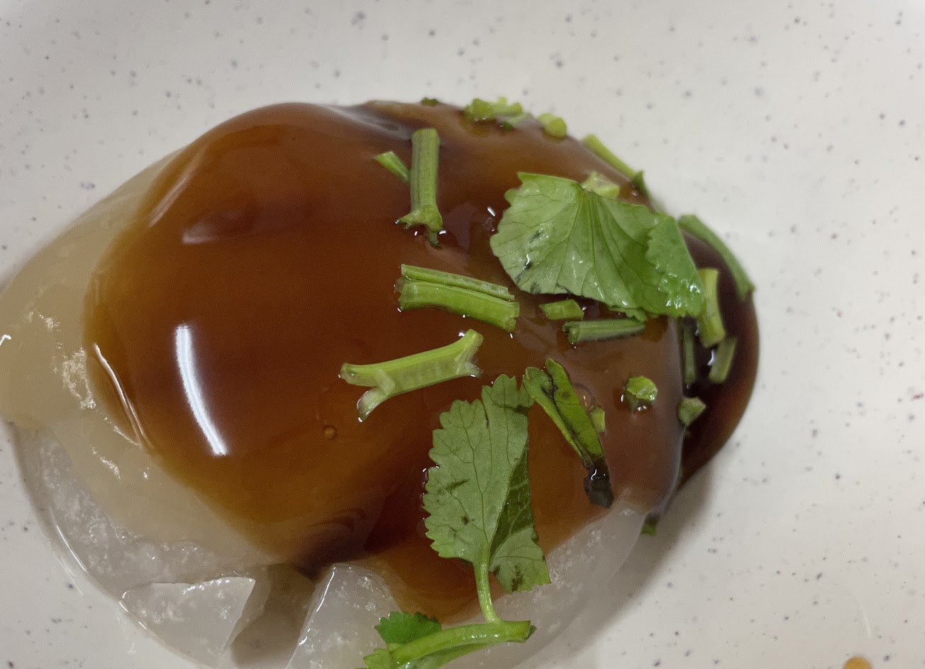 肉圓實在是普普,醬料跟肉圓分離的感覺,一咬下去,先感受到油的味道,接著是肉圓很有嚼勁的口感,最後才吃到醬料….