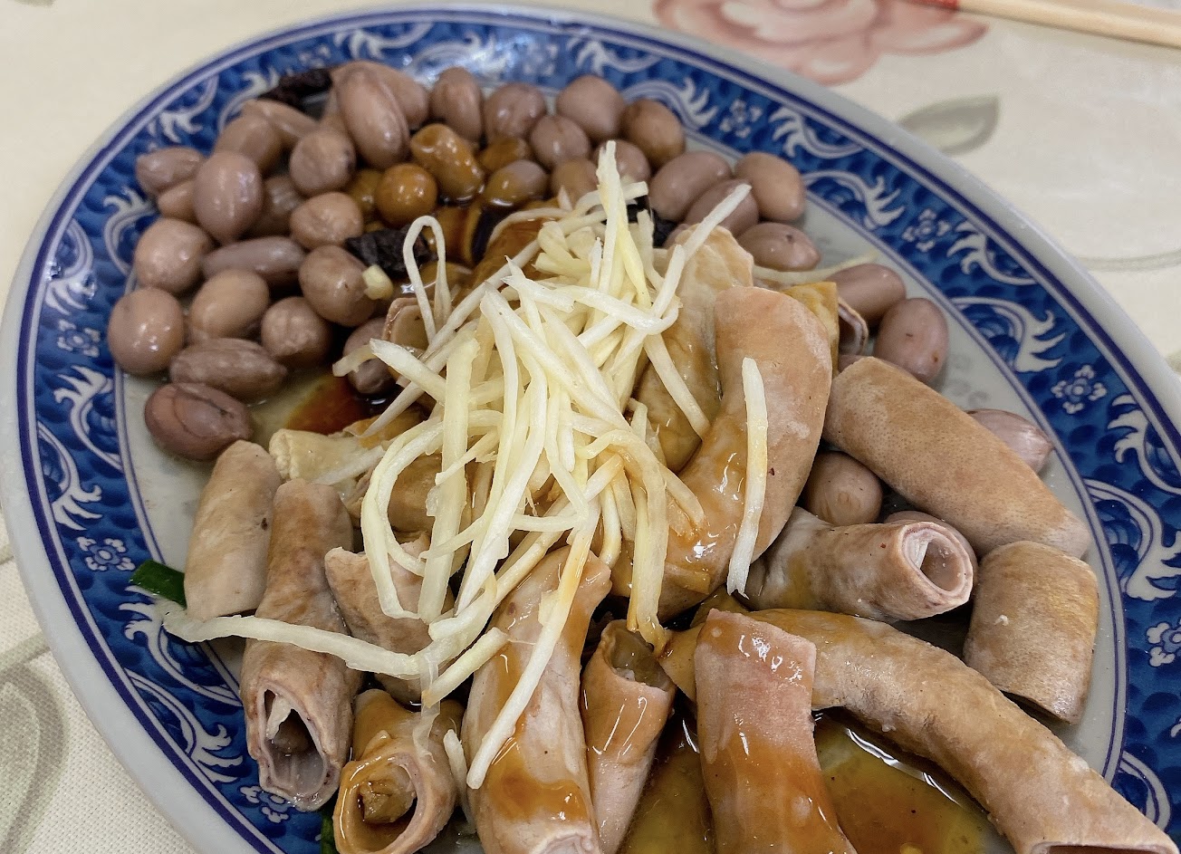 小菜看起來好像不錯,但味道普普通通,豬頭肉倒是蠻嫩的,但是燙的韭菜趟過頭了,味道跟口感很差。乾粄條口感還可以,味道也是比較普通一點。