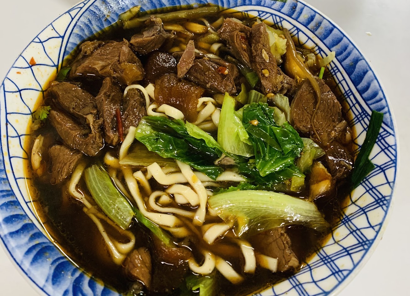 不愛吃粄條的人還可以點濃郁中帶點中藥風味的牛肉麵,不用百元飽足的白麵條與紮實的牛肉塊搭配酸菜一起食用,滿足你我的味蕾。