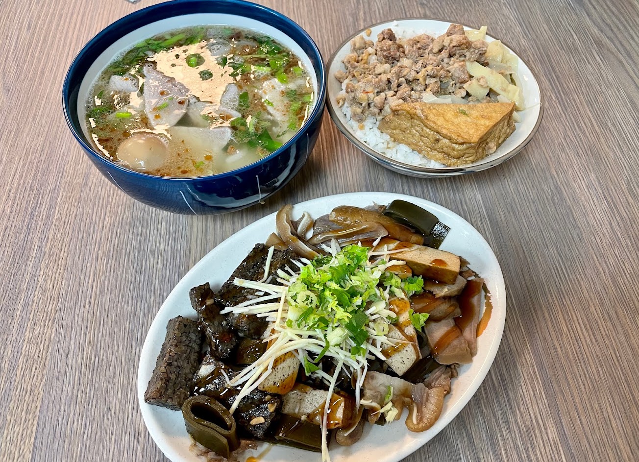 乍看菜單,或許以為麵$70,滷肉飯$50,以為定價好像很貴?其實是份量真的很大的一碗。幸好店家提供自助取用餐具,可以兩人分食。否則一般食量者是可能吃不完的(因為還要有空間吃吃特色滷味)。這裡滷味是明碼實價,給的份量也合理。不會像某些店,全由店家“心証”計算?,然後感覺吃了個寂寥或驚嚇?此次最驚豔的是骨頭肉湯,不油膩,份量足,環境也很舒適、乾淨。是一次很愉快的用餐。 …