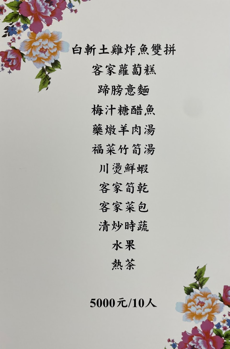 超好吃又便宜!每道菜都極好吃!六人合菜2500元,福菜蹄髈湯好吃,清香解膩;蹄髈意麵好吃超大盤十個人都夠吃,蹄髈入口化,意麵醬很香;客家燜筍好吃,用高湯煮很嫩;玉米雞肉質細膩,沾客家桔醬很特別;奶黃包內裡跟一般不同,餡不是細沙感,比較粗顆粒,夠油夠好吃。