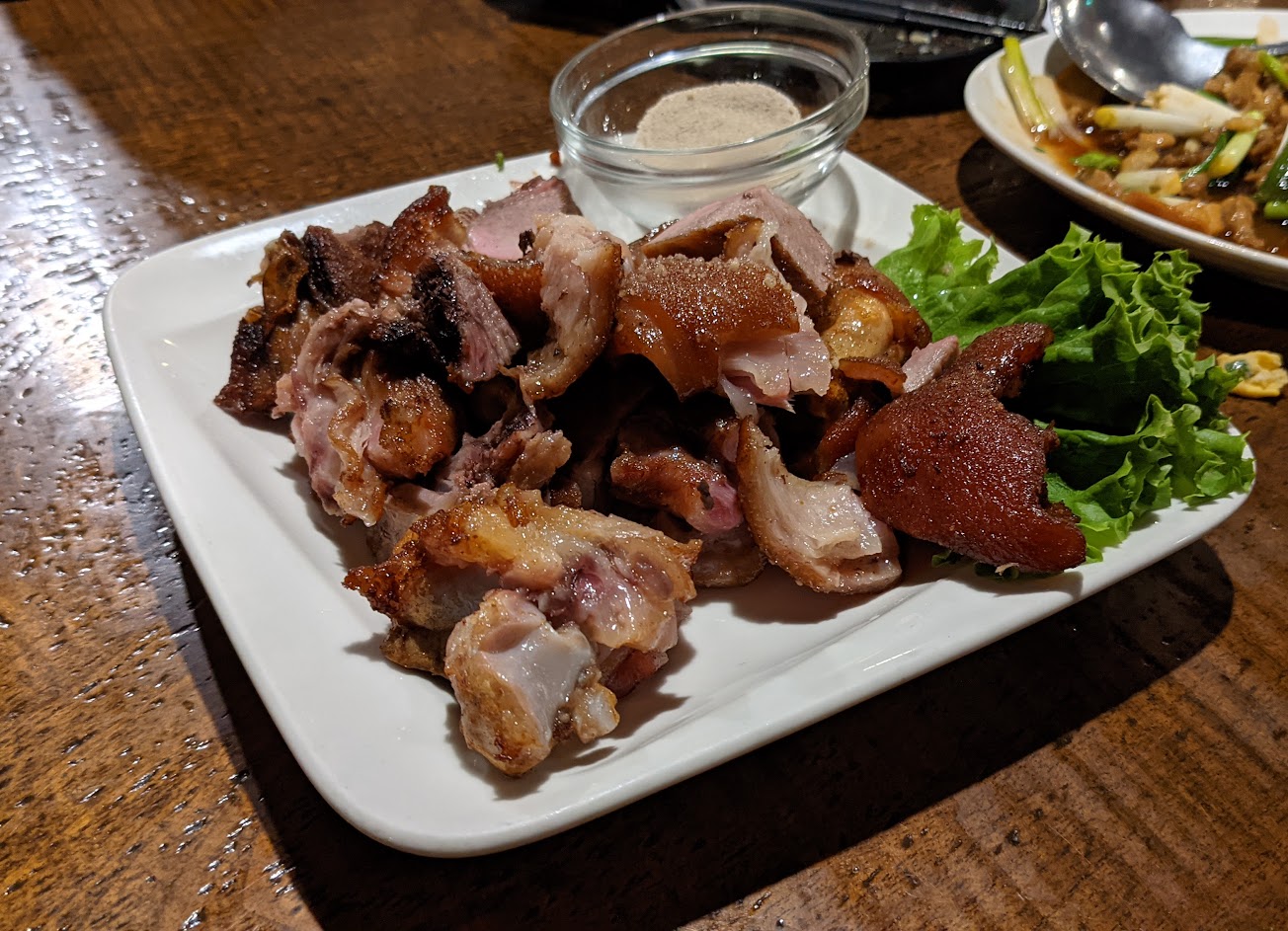 口味有一定的水準,但不到驚艷,生意很好,服務人員也親切,有很多停車場,上菜快速。最喜歡梅干扣肉,肥肉軟嫩,但不愛肥肉的人可能會怕,椒鹽肥腸幾乎都是菜肥腸有點少,感覺菜和肥腸都是炸的,所以偏油。