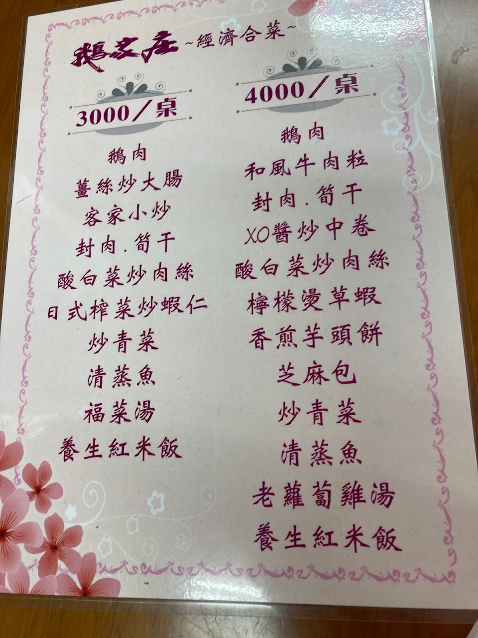 價位一桌3000 過年加10%