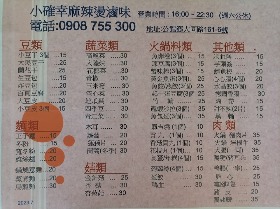 2024最新在地推薦餐廳的菜單_小確幸滷味&麻辣燙的菜單、圖片