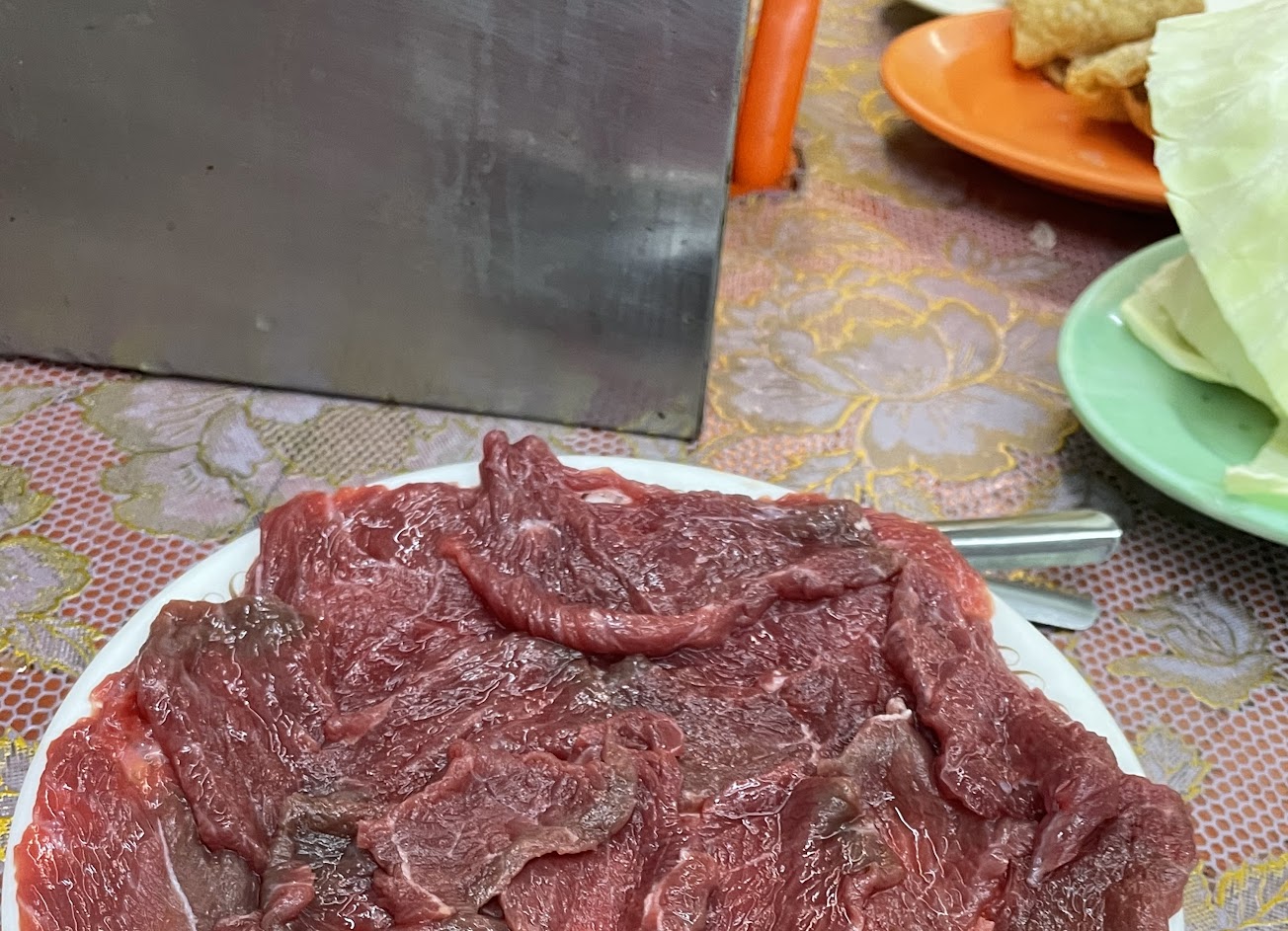 遇到老闆的朋友直接一起聊天,老闆還招待我們一盤牛肉