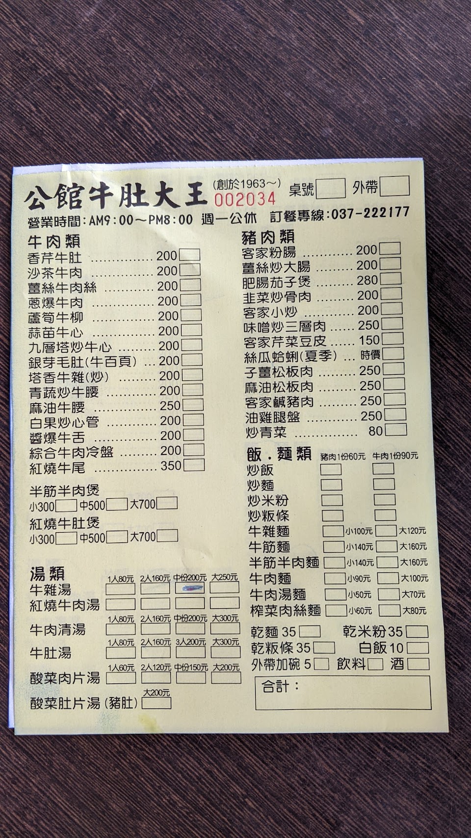 2024最新在地推薦餐廳的菜單_公館牛肚大王的菜單、圖片