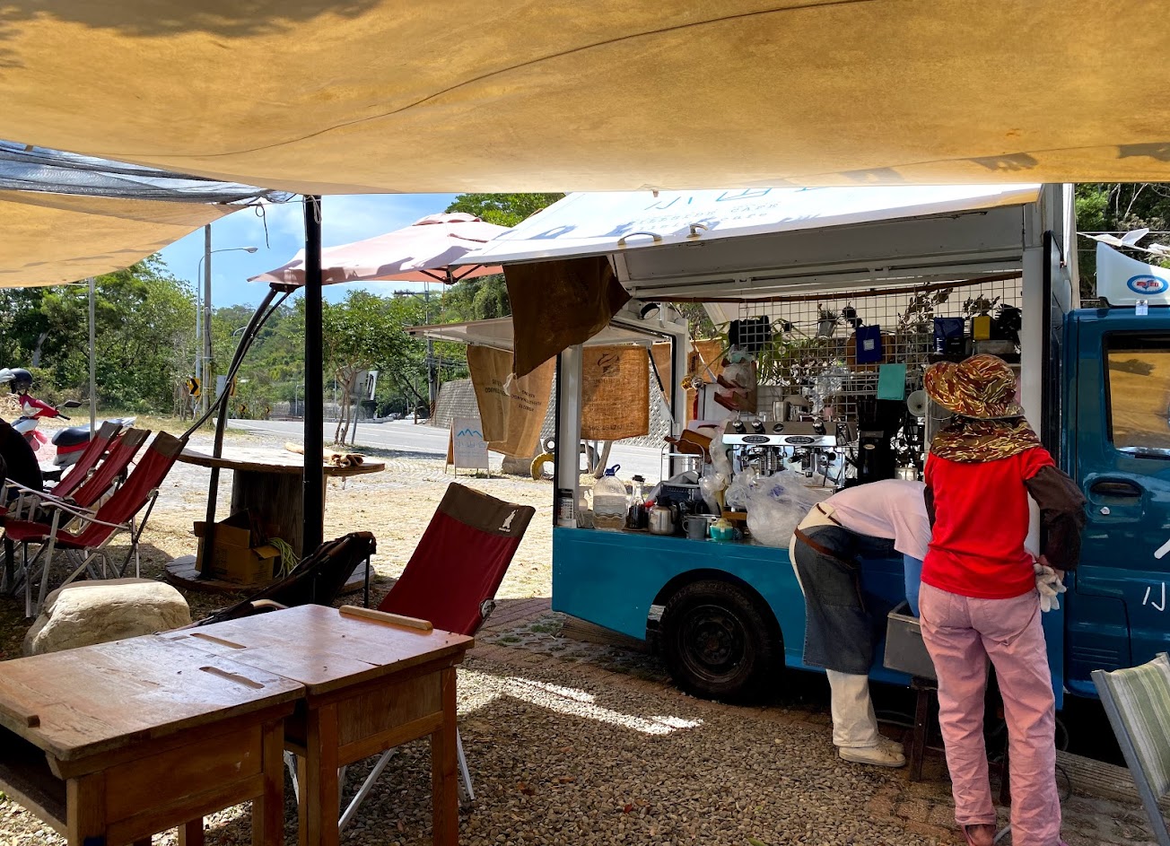 很有溫度的咖啡車,這點真的算不錯,有樹蔭又有微微涼風,雖然有蚊蟲螞蟻,但是親切的老闆娘會幫忙點蚊香驅蟲!
