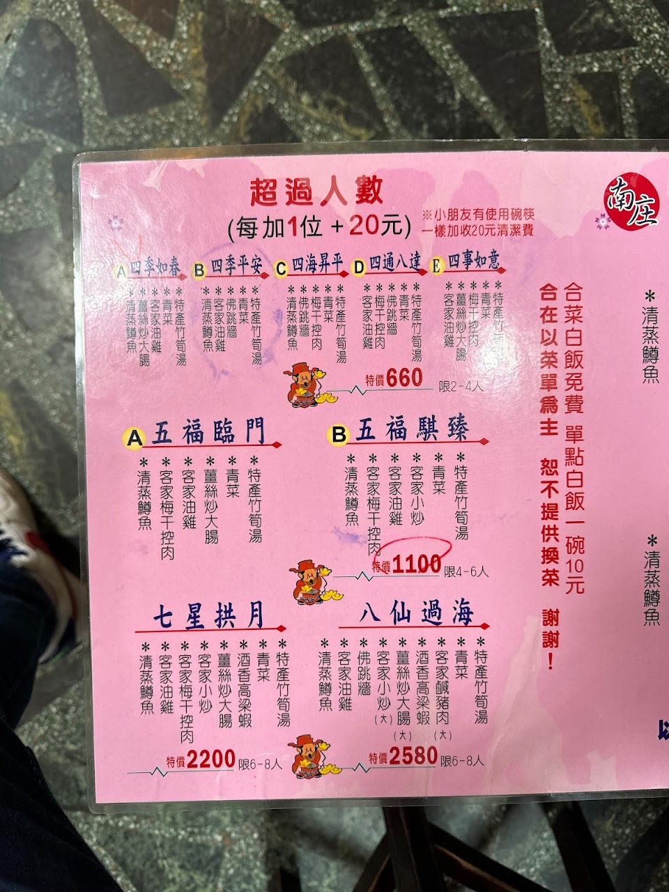 大年初六中午三個人點2號套餐550元,有菜有肉又有湯,白飯吃免加錢,味道不錯也吃得飽,CP值高,下次一遊會再來吃