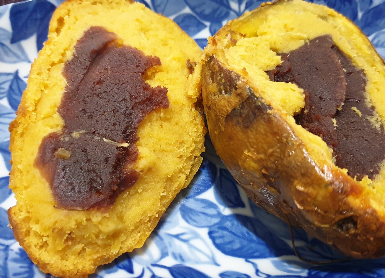 用地瓜泥做的蕃薯燒,一顆130元有點貴(秤重的),裡面還包紅豆泥。