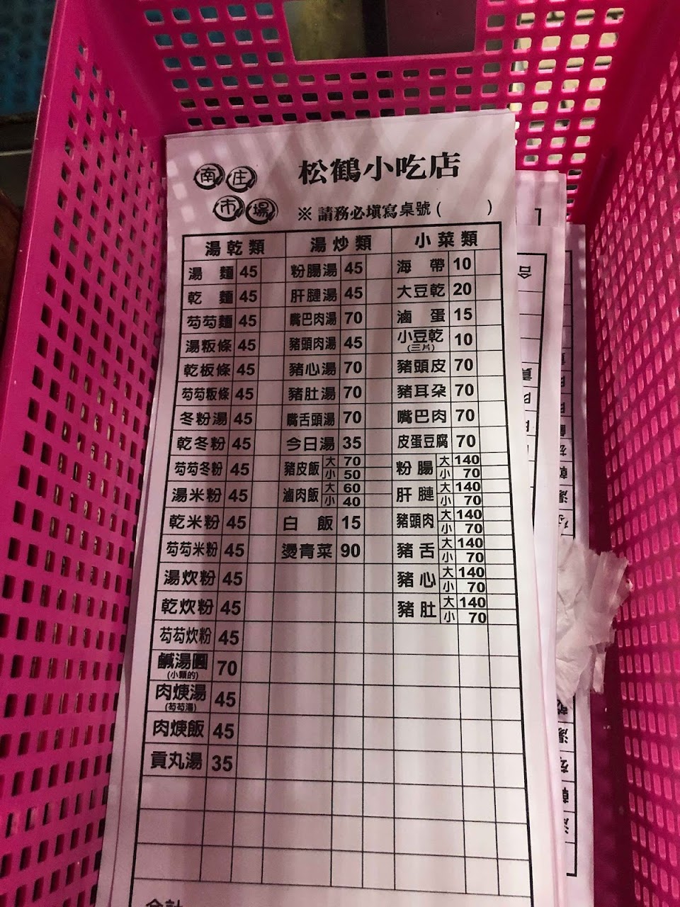 位於南庄桂花巷對面市場內的松鶴小吃店,是當地特色古早味的麵攤,最具知名度的就是他們家的招牌豬皮飯,喜歡吃豬皮的人有福了⋯⋯