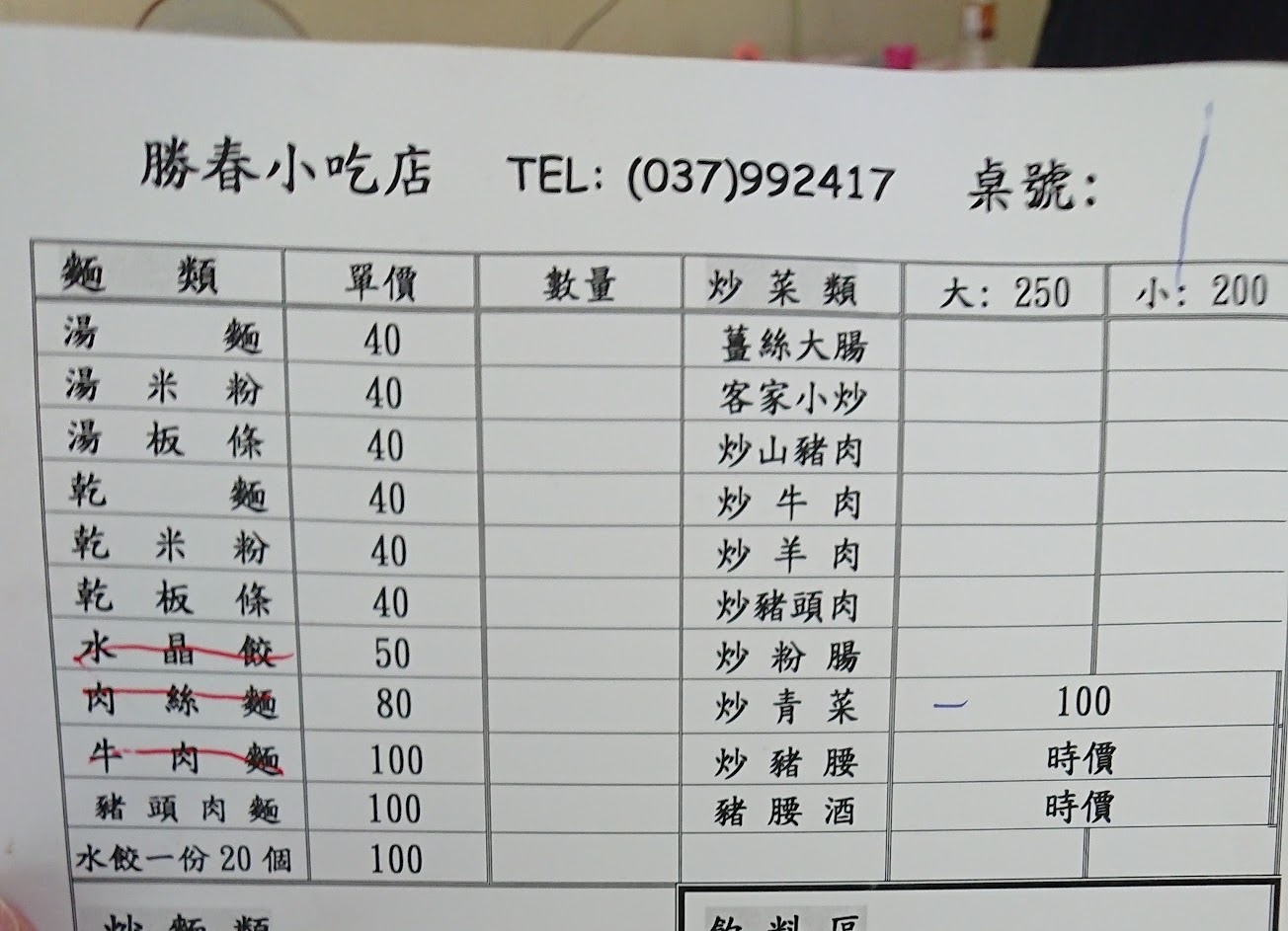 2024最新在地推薦餐廳的菜單_勝春小吃店的菜單、圖片