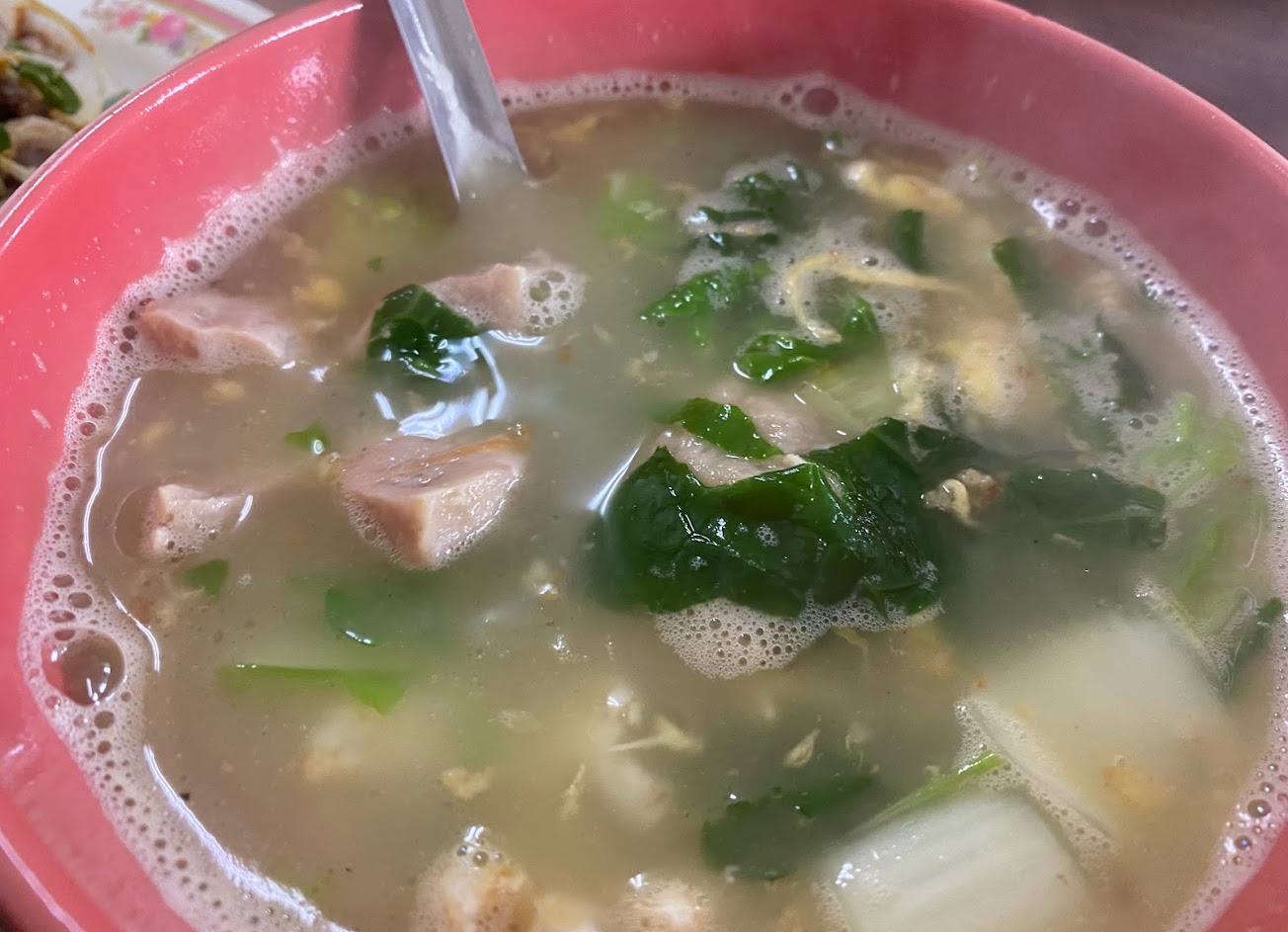 好吃的古早味,湯跟小菜調味很剛好不過鹹也不油,薑絲大腸有酸,雖然不到非常酸但配炒麵或炒飯剛剛好。尤其是每樣都物美價廉!