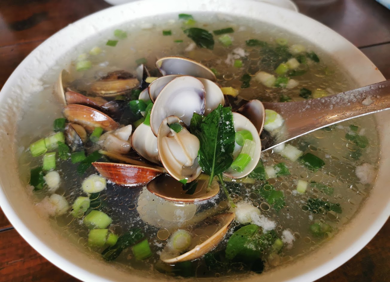 好吃,蝦仁滑蛋,牛腩,炒青菜,蛤蜊湯。