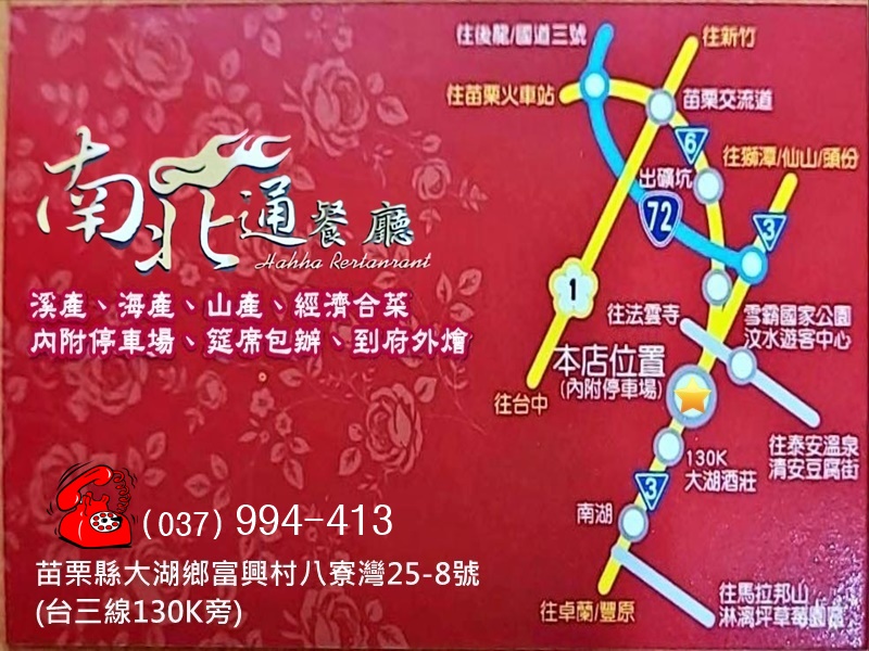 這是一家「辦桌」為主的客家菜餐廳,菜色在傳統客家菜的基礎上豐富了許多變化,色香味俱全,每次來都吃得忘記拍照,如果您到大湖採草莓、到大湖酒莊一遊,很建議到這家餐廳用餐。