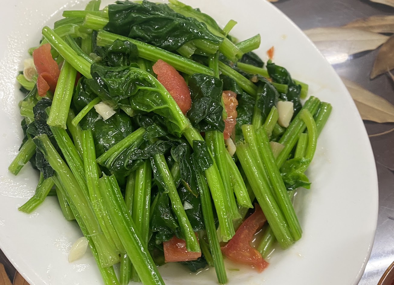 炒水蓮:份量十分足夠的一盤,蒜頭爆香,搭配菇類切絲清炒,爽口去膩。