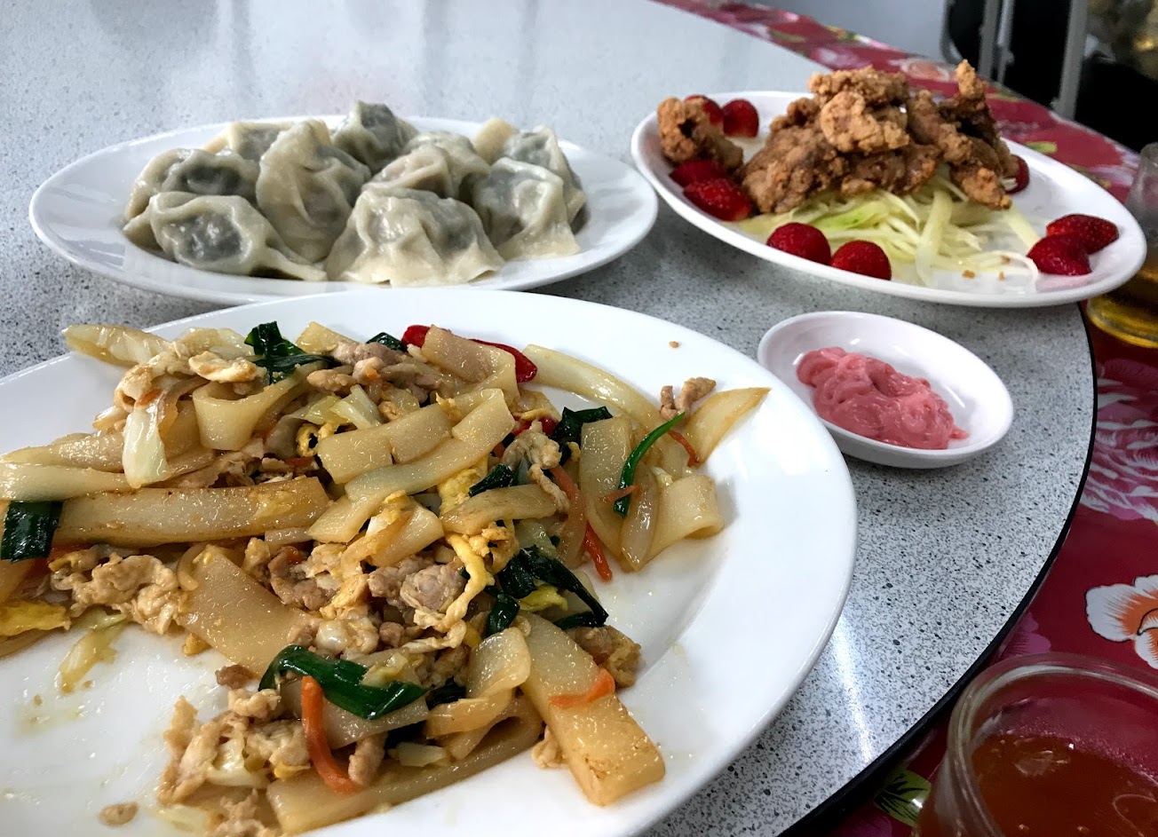 排骨夾著青木瓜絲再沾草莓醬,有意想不到的好滋味,羅勒水餃的九層塔香搭配醬油也很好入口。兩個人點個粄條、水餃再加一樣菜吃的很過癮,下次還會想再來