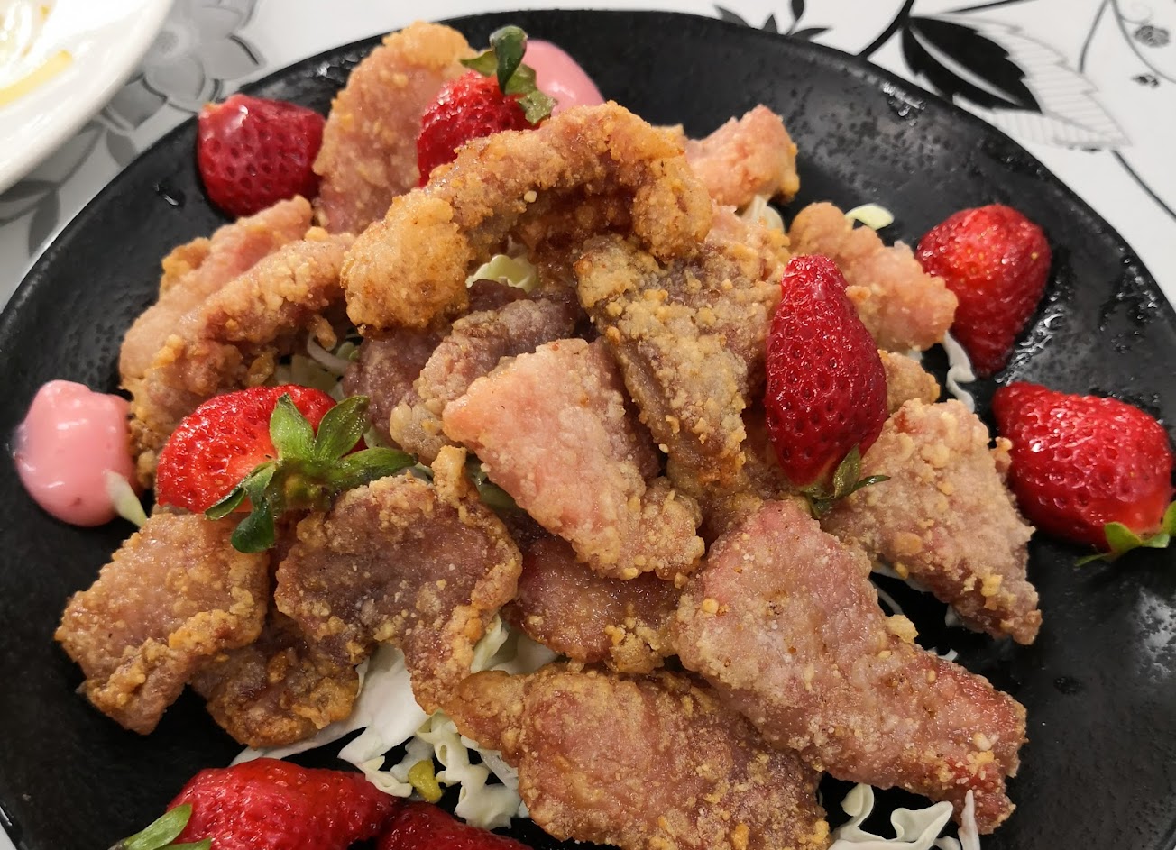 距離大湖草莓園戰區只有短短幾公里,是採果用餐的選擇之一,提供合菜與單點等選擇,料理方面結合當地草莓作為基底,例如3,480元合菜菜色中有一道草莓炸雞塊,倒是很有視覺且味道衝突的料理,喜歡嚐鮮的食客可以嘗試看看。