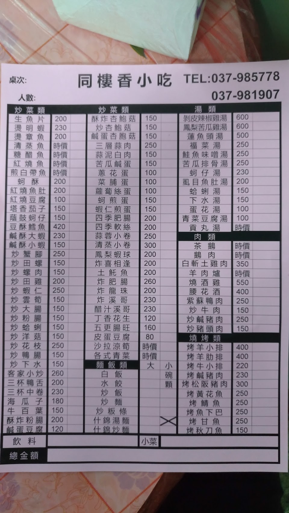 2024最新在地推薦餐廳的菜單_同樓香小吃的菜單、圖片