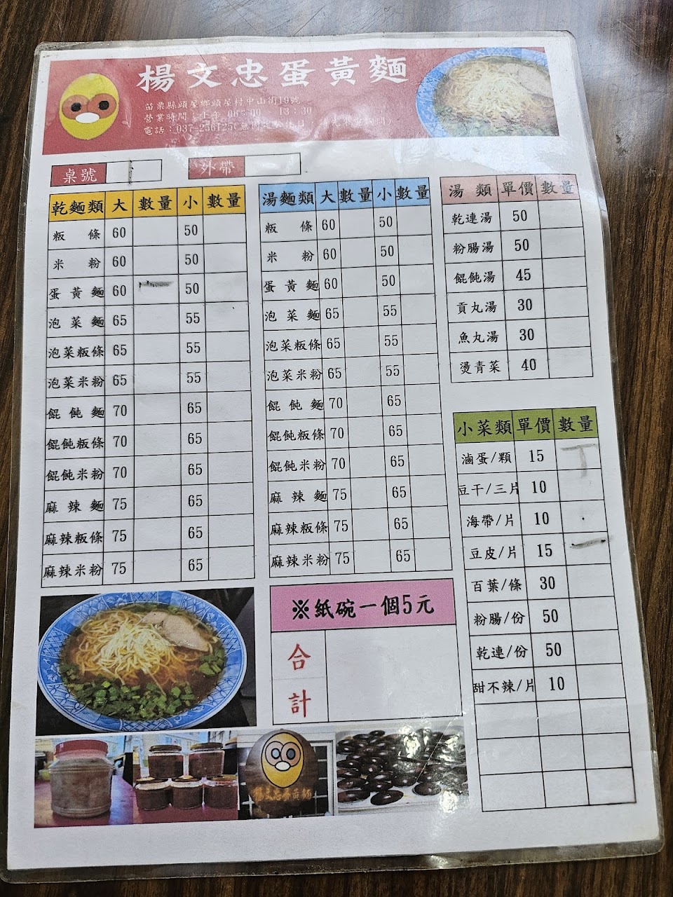 2024最新在地推薦餐廳的菜單_楊文忠蛋黃麵的菜單、圖片