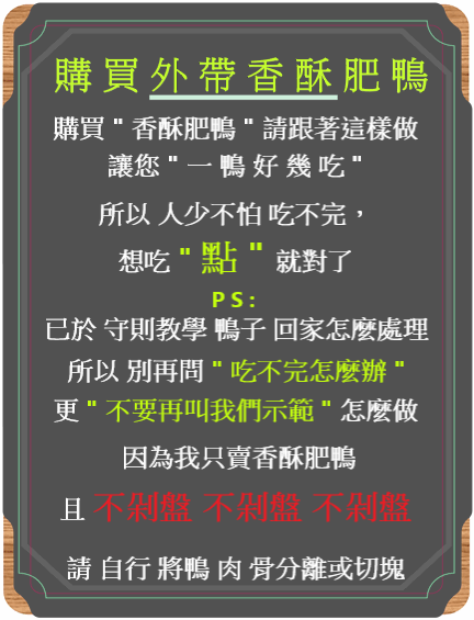 招牌的香酥肥鴨