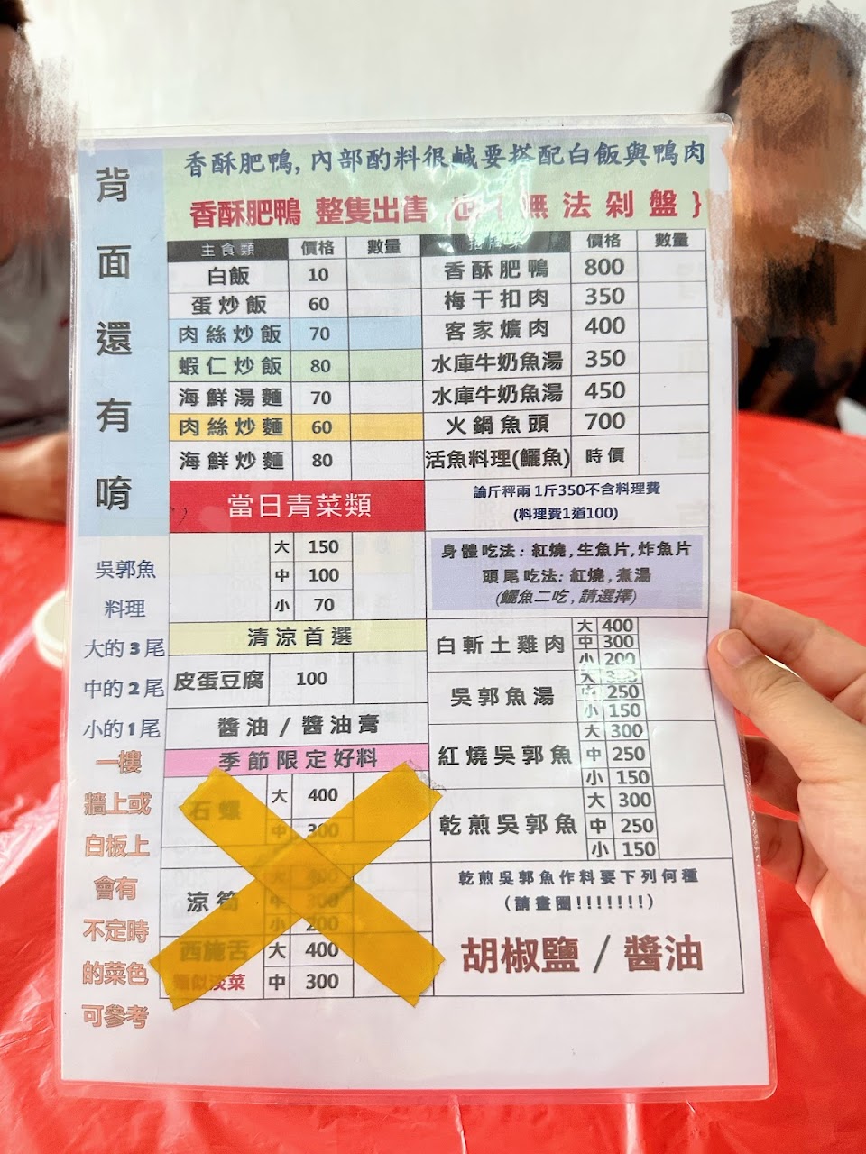 假日沒什麼人潮,也不用排隊訂位,不曉得是不是明德水庫沒落,人潮變少,香酥炸鴨好像不是現炸,材材硬硬,沒有鴨香味,不是很優