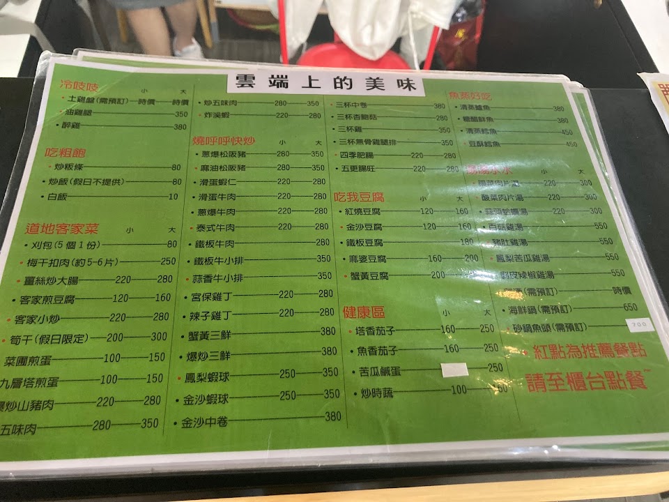 2024最新在地推薦餐廳的菜單_雲端上的美味的菜單、圖片