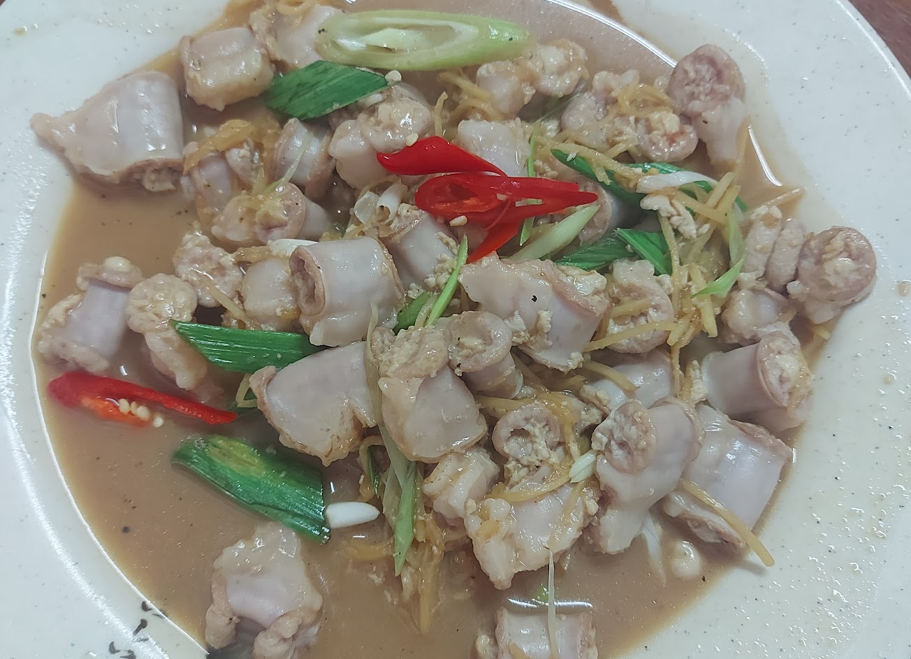 3年前來吃過覺得很好吃就一直想要來二訪。 陽春麵湯頭好喝,麵的份量很多。炒板條炒功不錯,麵體Q彈不軟爛,加上他們的特製辣醬很好吃。滷味就略顯普通。薑絲炒大腸個人蠻推薦的,大腸一看就知道沒有經過一些藥水處理,所以口感上來說比較韌,但是大腸處理的蠻好的,沒有腥味,非常好吃。