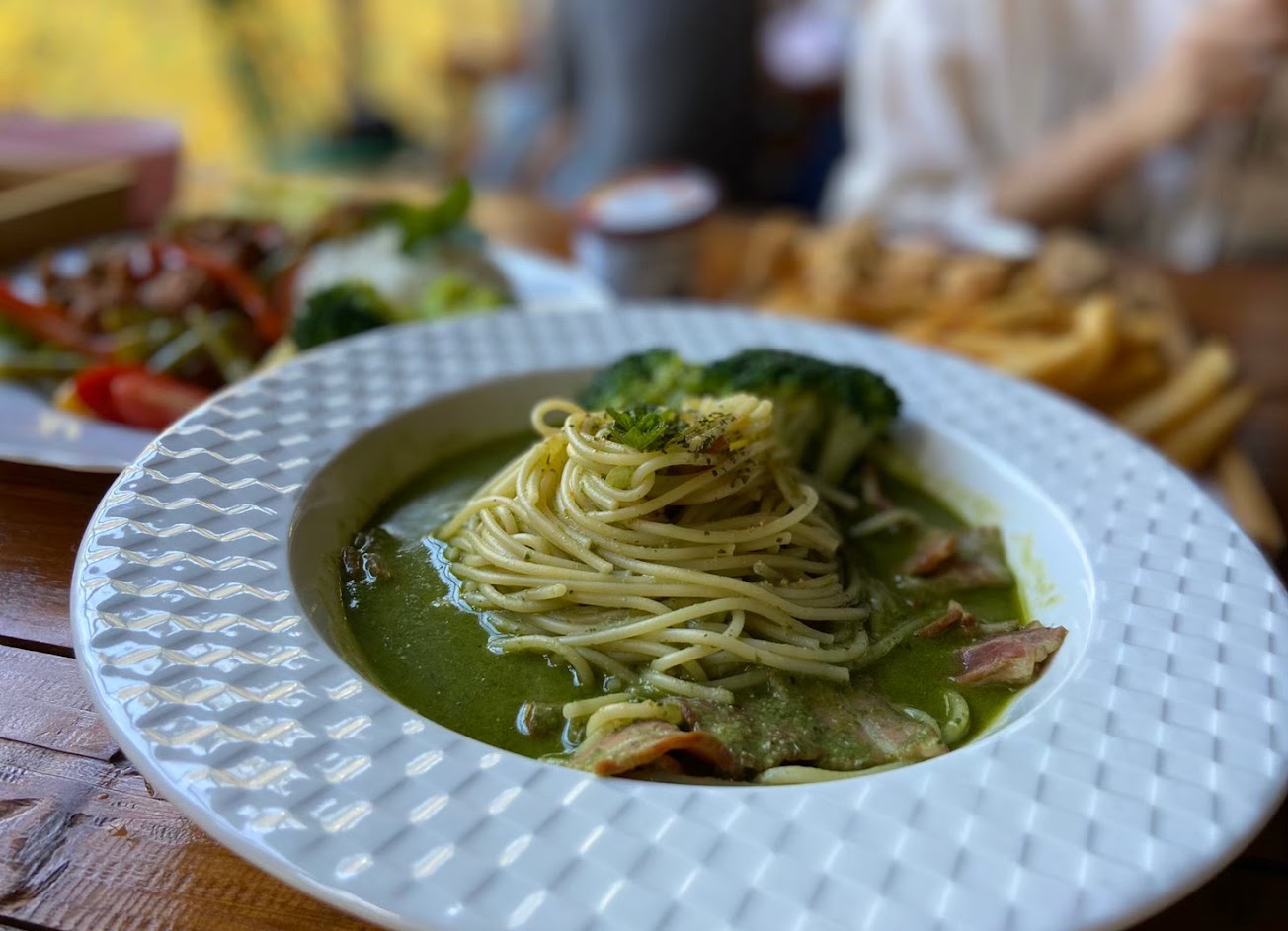 餐廳裡的青醬義大利麵真的很好吃 推推?