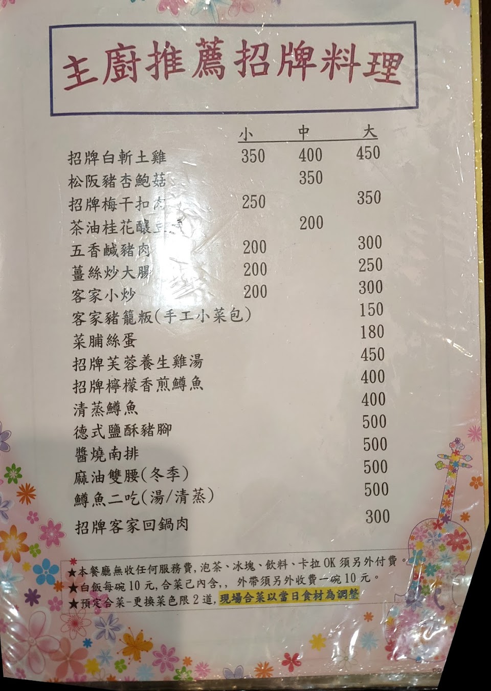 餐點的部分必須說店家真的很客氣,每一道的量都很夠,明明點的8人份,上來幾乎都是別人家店10人份的樣子,並且餐點都很好吃,特別是雞肉,還有梅菜扣肉,非常香,真的很有客家風味。糖醋魚皮有一點硬,超級大條,根本吃不完哈哈,肉超級厚。