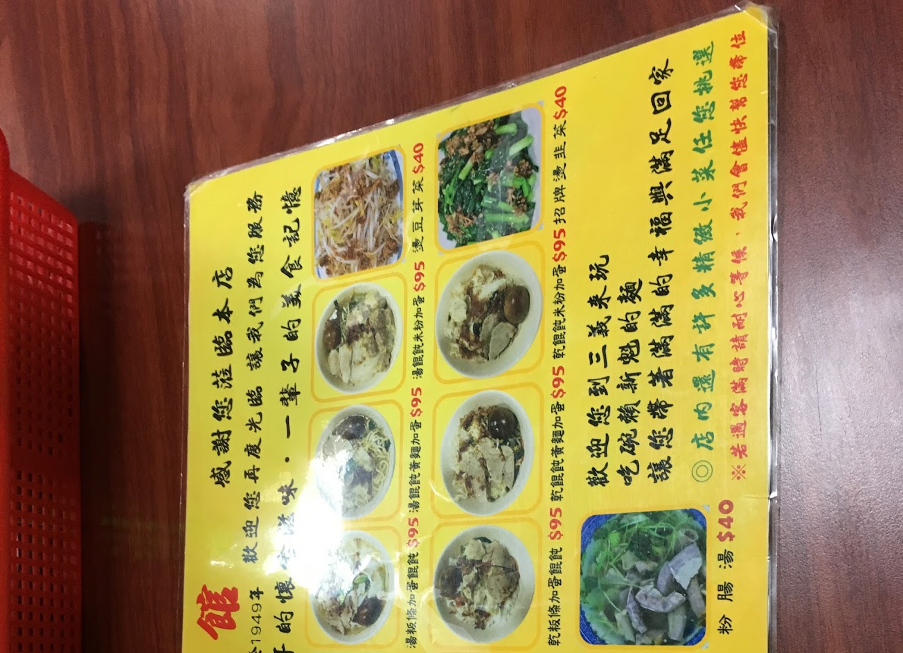 好油好鹹啊 招牌的餛飩粄條加蛋,板條不錯,肉片柴,滷蛋像鐵蛋 乾麵⋯⋯很一般 燙韭菜十分好吃(兩顆星都給他!)可是超級鹹哈哈哈 骨肉湯也不錯也是非常鹹 小菜的泡菜很不優⋯⋯
