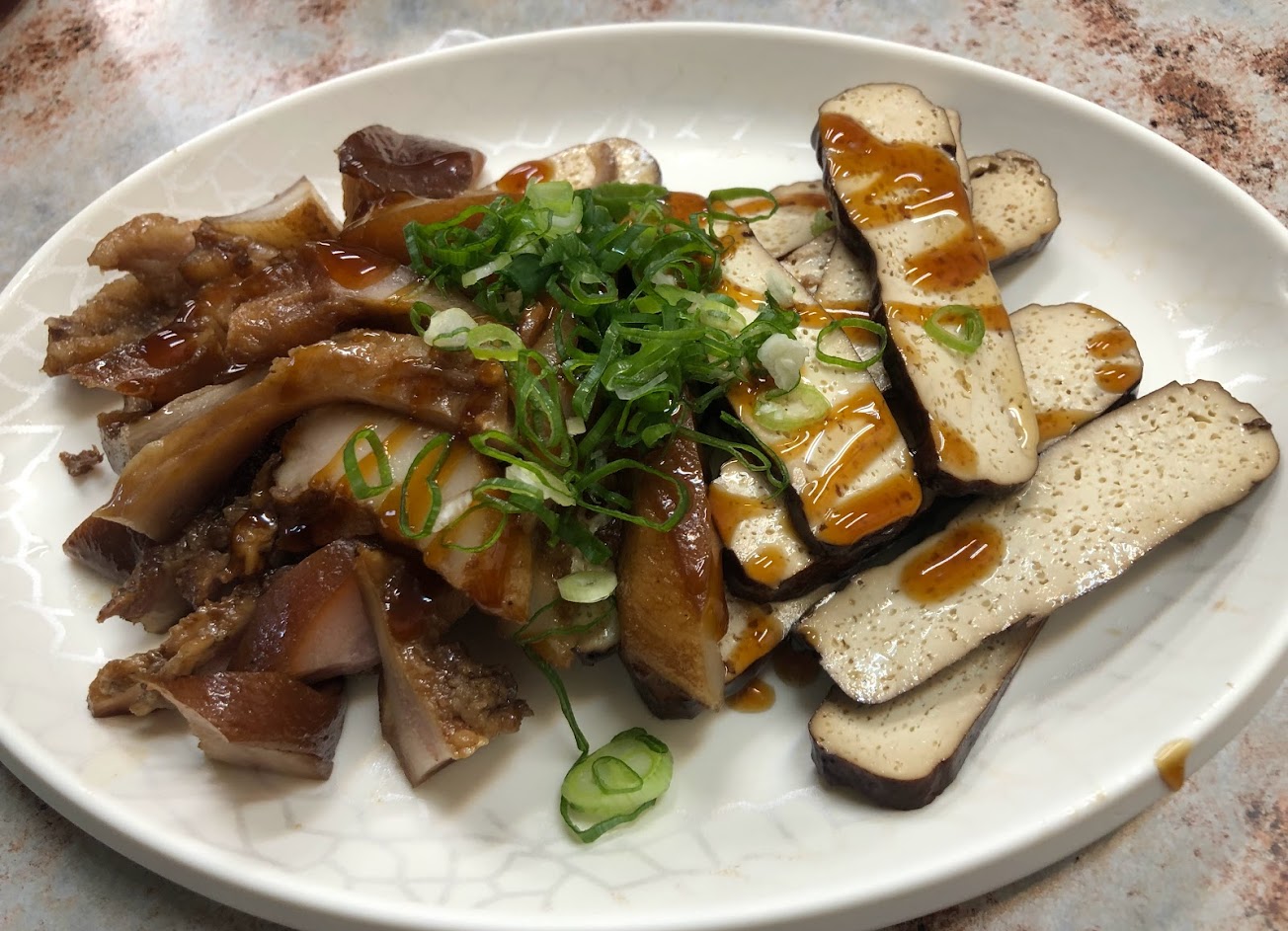看起來像當地老店。 鴨肉麵的鴨肉略有腥味,湯頭味精偏多;滷味看起來可口,但吃起來太硬,香氣也普通。 如果不是找不到東西吃,建議不用來。