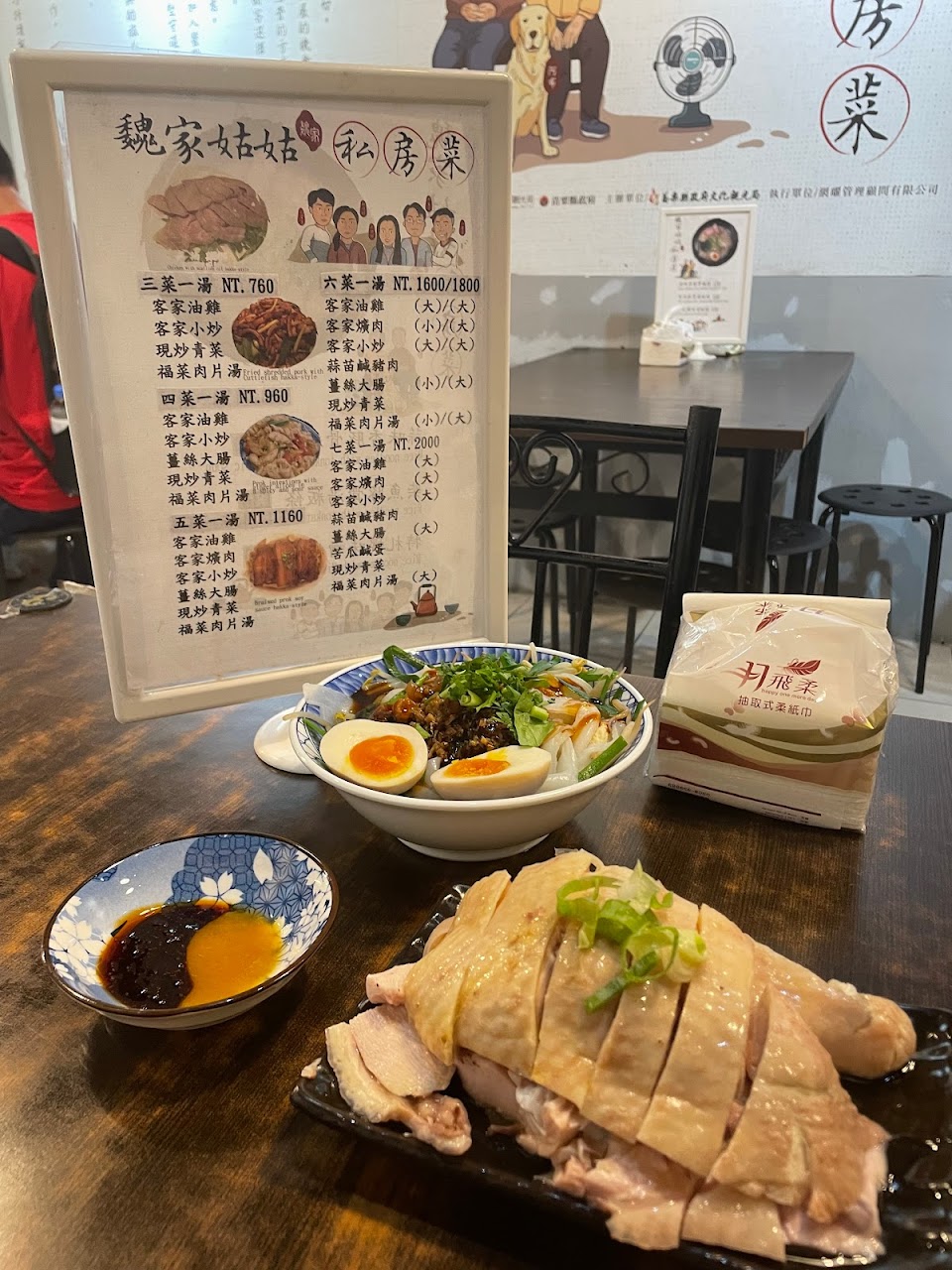 油雞冰箱味很重很腥,感覺沒有保存好,肉腥味明顯,其他客家菜有形但水準不好,比如基本的爆香沒做所以沒什麼香氣,服務普通