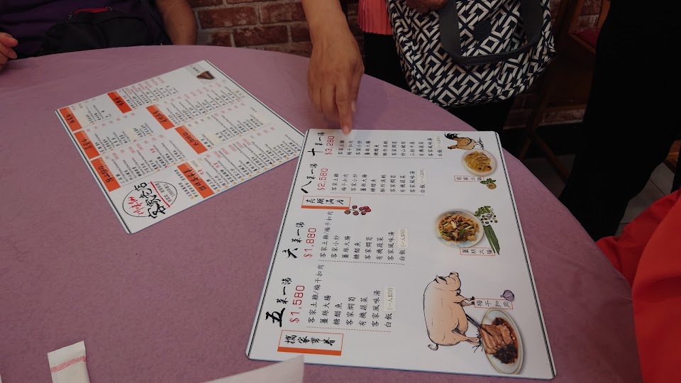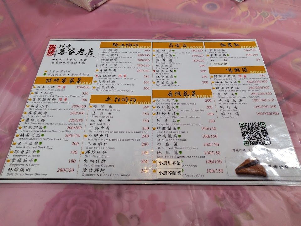 味道喜好很主觀,但是老闆態度真的不太好,點餐有一道筍湯沒有在菜單上,我們點前有詢問價格也告知要點小份的,結帳覺得價錢不對詢問下告知湯上的是中的幫點的時候也寫中的,但點菜單老闆並沒有給我們看啊!大份小份完全是老闆自己說,有種強迫消費的感覺。至於味道,這家真的顛覆我對客家菜的印象,疑惑食尚玩家介紹跟政府頒的客家菜認證是認真的嗎?點了客家板條份量不少,但是口味非常清淡完全沒有香氣外加湯湯水水的,跟印象中的客家炒板條完全搭不上邊,另一道覺得奇怪的是紫蘇茄子,本來想嚐鮮,結果踩雷了,味道真的很奇怪很不搭,而且不解為什麼茄子皮全削掉了,其餘菜色就中規中矩,價格也不算便宜,只能說蠻失望的,下次來三義也不會想光顧。