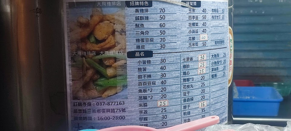 2024最新在地推薦餐廳的菜單_大飛雞排店的菜單、圖片