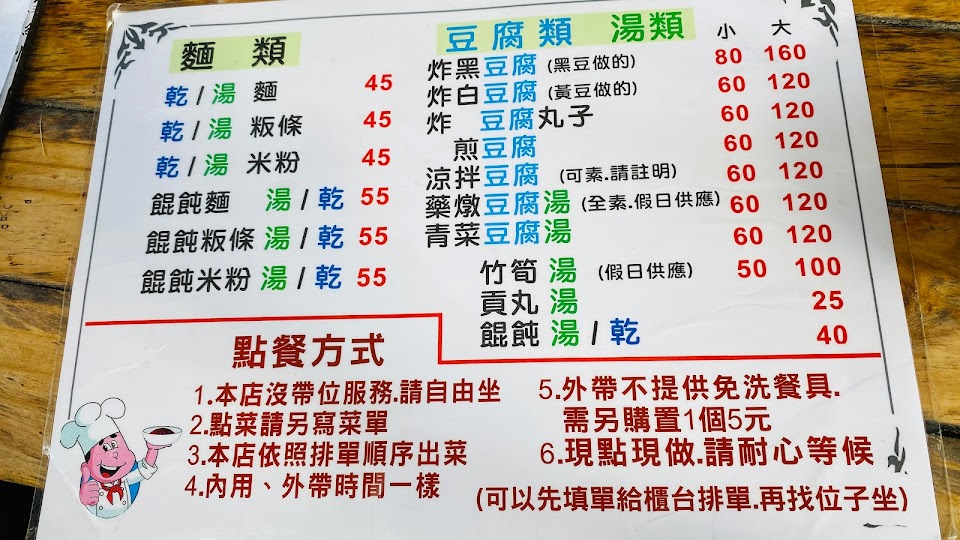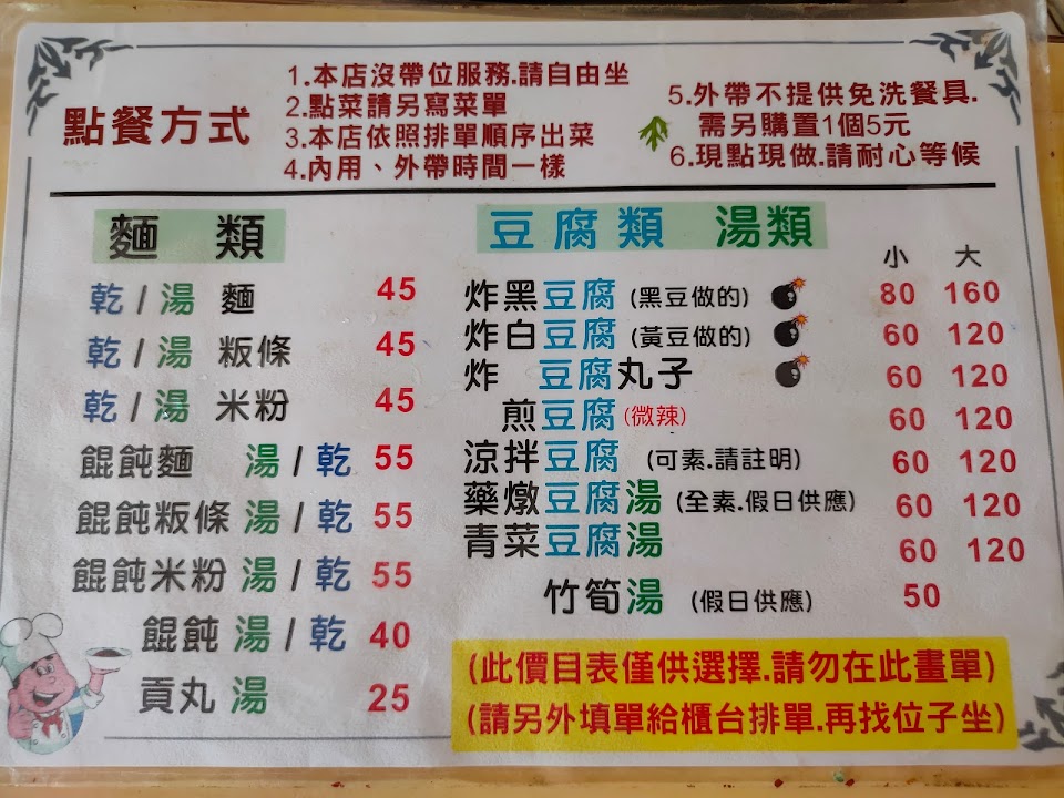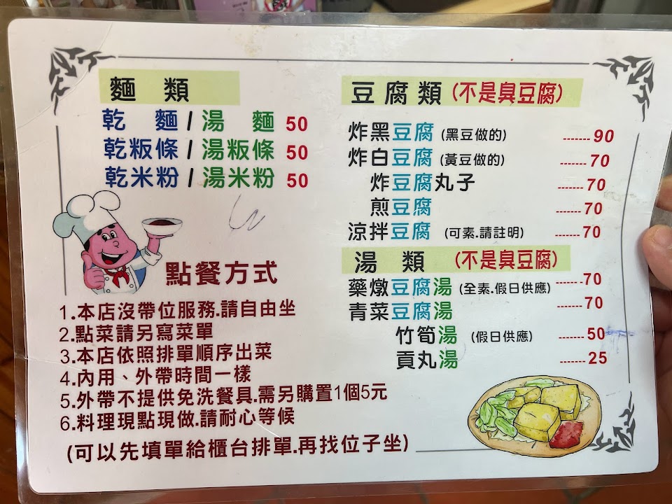 乾麵丶湯板條、炸豆腐、炸豆渣丸子丶藥膳豆腐,全家人都覺得變得難吃!出歺一直都很慢,算錯錢!