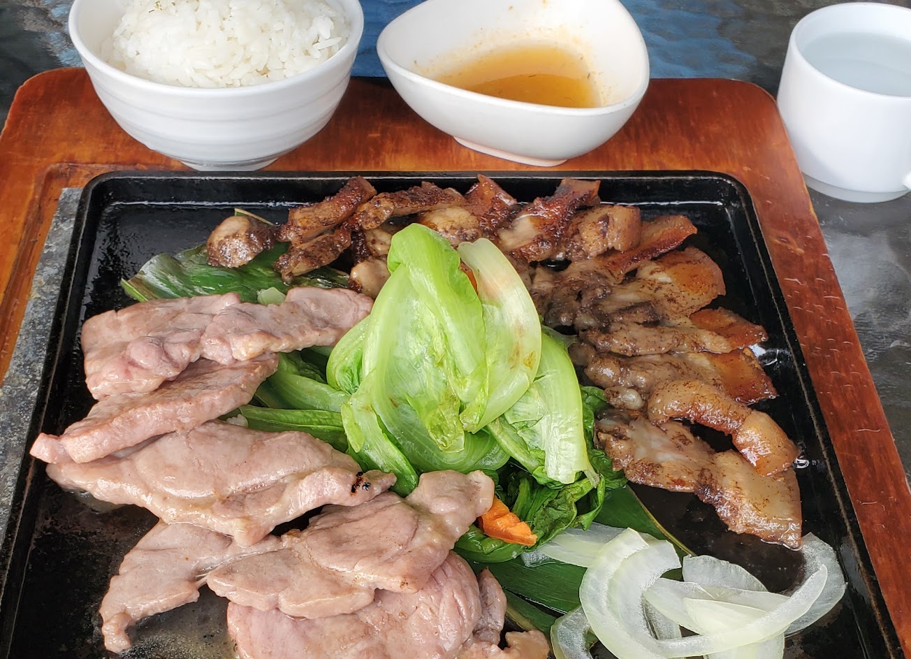 鐵板三拼 鹹豬肉油膩膩 牛豬OK
