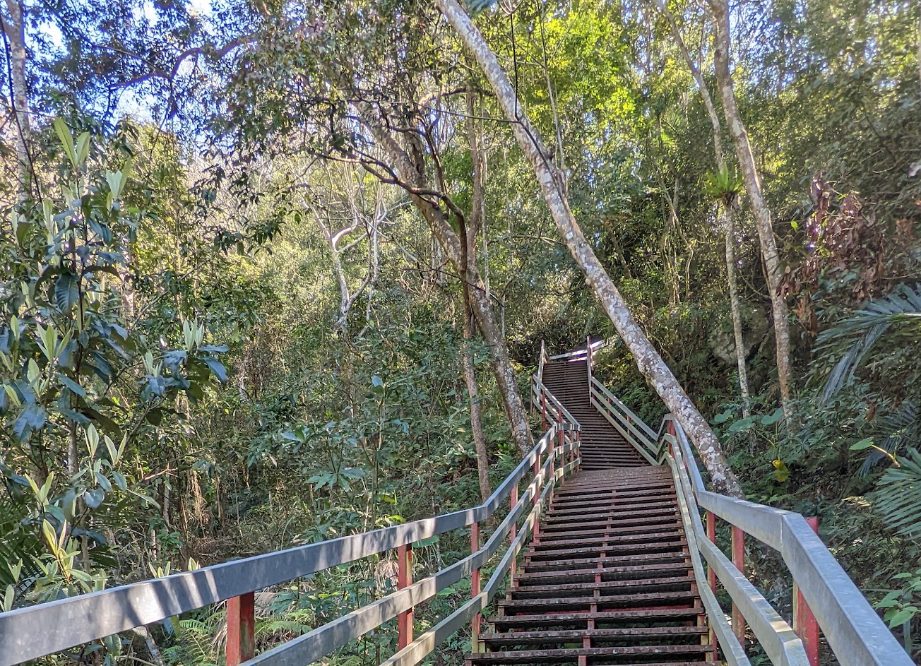 前面1-3算是有石階的升坡,4-7是平穩的緩坡還有微風吹來,7-8是需要手腳並用的石頭坡。整體初學者而言1-3會有點喘,7-8要注意鞋子是否防滑,尤其下雨過後。