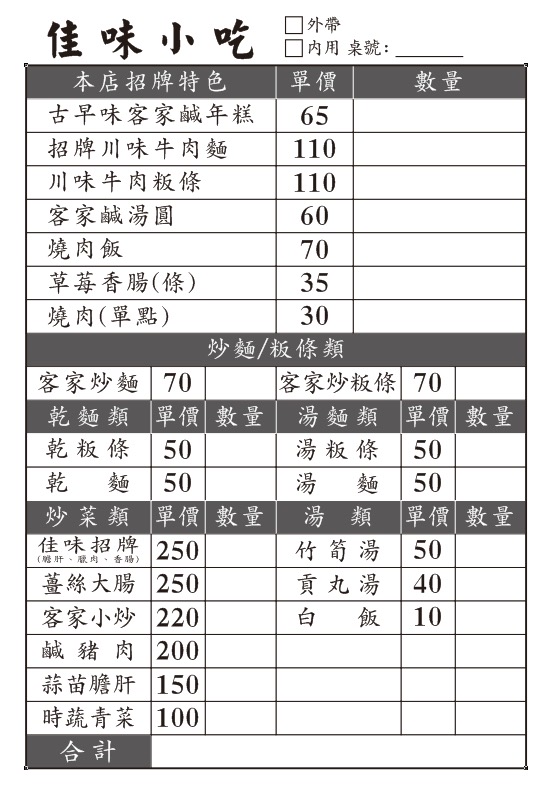2024最新在地推薦餐廳的菜單_佳味小吃 古早味客家鹹粿 燒肉飯 牛肉麵的菜單、圖片