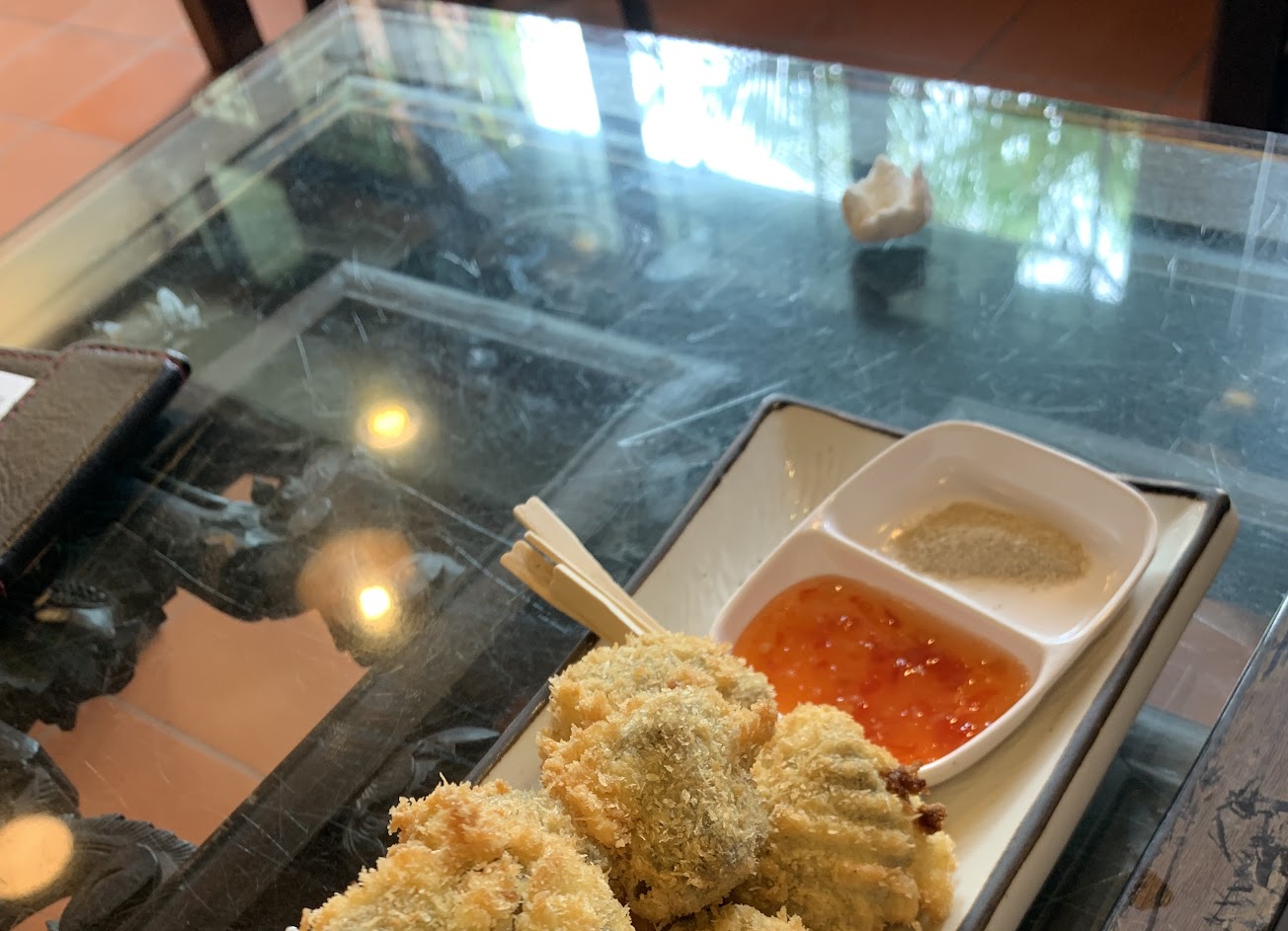 炸仙草:口感像外面賣的炸雞蛋豆腐,搭配泰式醬好吃,但沾胡椒粉就感覺不搭