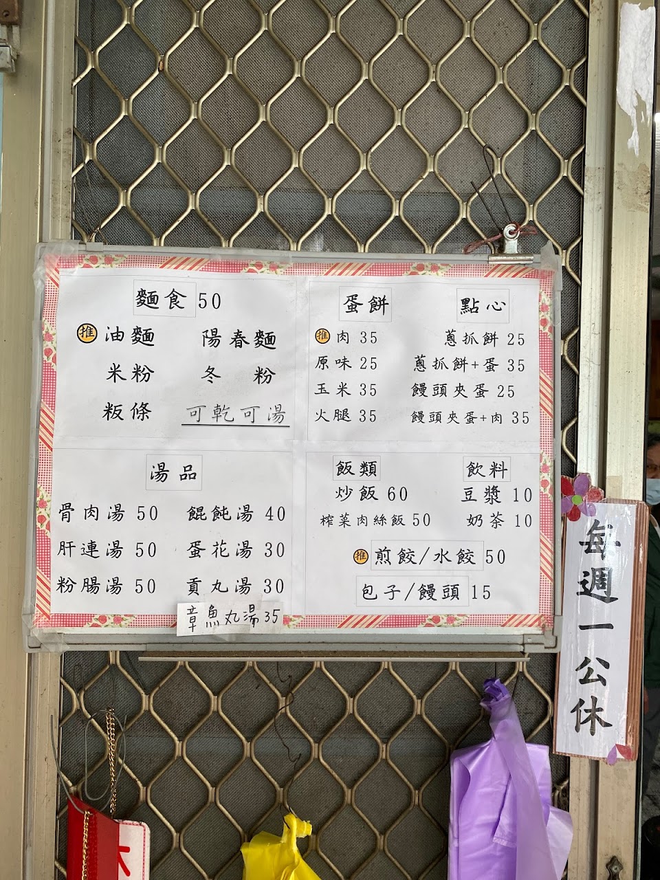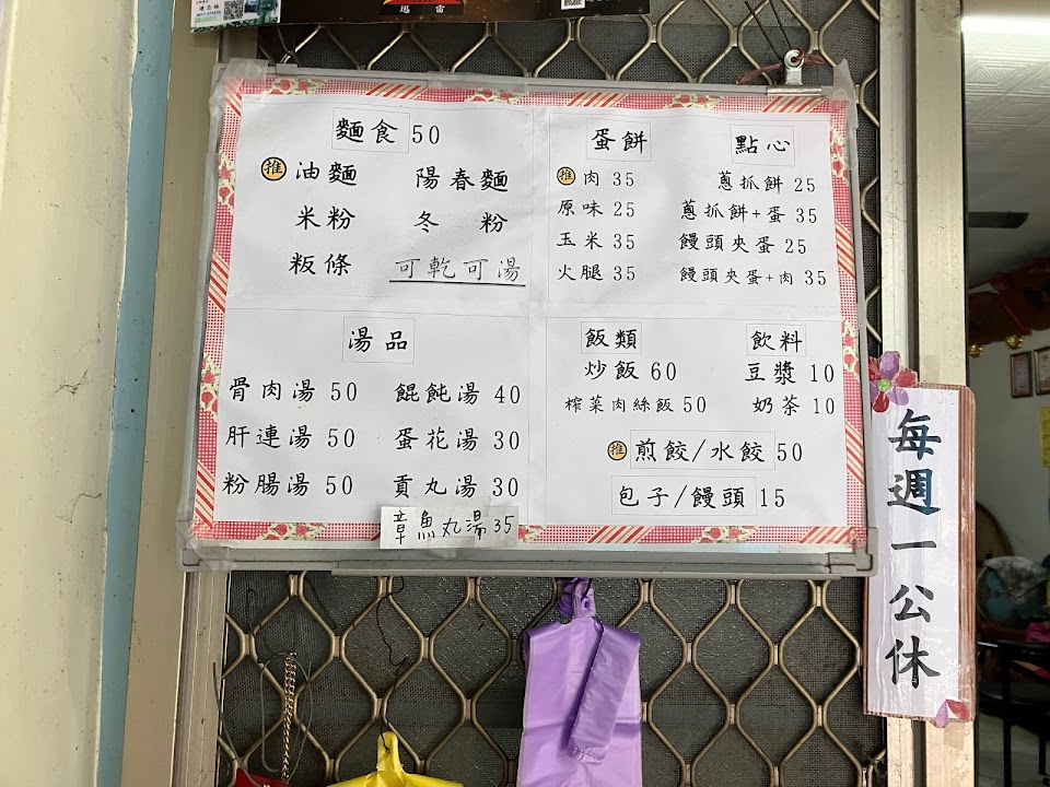 板條 湯 煎餃 炒飯 滷蛋 貢丸湯 蛋餅加肉
