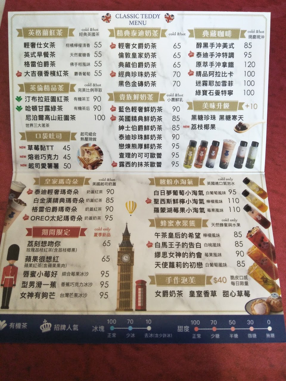 在大溪街上可以看到裝潢設計這麼用心的店不多,這家是不多的之一。店不大,但很好拍照,店內有一整片牆用馬克杯裝飾,有一隻比人還大的泰迪熊,天花板也鏤空出一隻熊的形狀,還會變換顏色,其他的牆壁壁畫全部敘述著英國意象,進去喝一杯50元的飲料都覺得愧疚……!