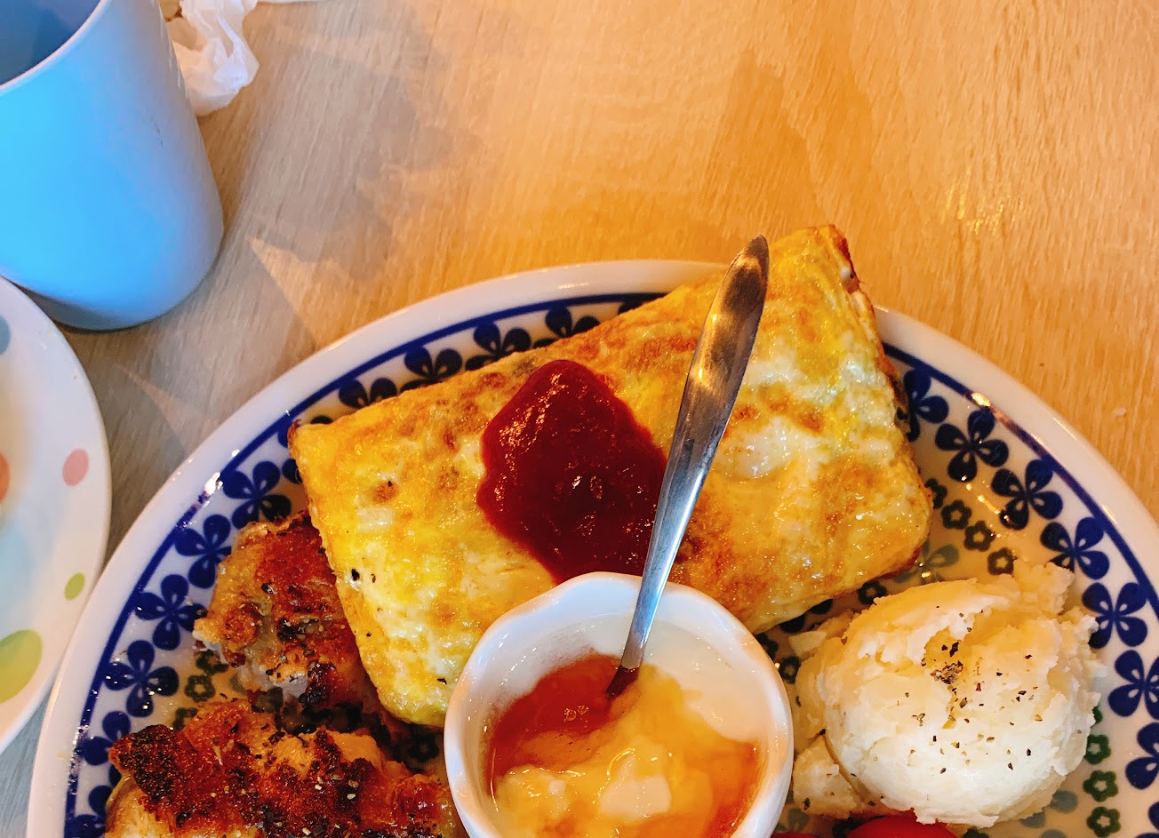 偶然發現的早午餐店,非常驚艷? 今天早午餐嘗試了: 王子套餐、格格套餐、蛋捲乳酪菇菇 (各套餐的內容物可以看菜單,如果不愛生菜,可以請店家更換喔~超大❤️) 上菜時被早午餐的大份量嚇了一跳? ?格格套餐是用刈包包著豬排跟生菜,刈包軟中帶點嚼勁,豬排?又煎到軟嫩適中非常清爽好吃? ?配菜:很多不同的生菜搭配胡麻醬,好看又好吃?、馬鈴薯泥沒有太多的沙拉醬調和,也是很原味不膩口?,還有還有,很喜歡早午餐附上優格,超級健康❤️❤️❤️ ?再來,套餐有附美式或紅茶(可調甜度),都無限暢飲喔???(會不會太佛心????),但不會因為無限暢飲就失去品質,美式很香醇不苦 ?期間限定當然也要來一下啊! ?草莓鬆餅:鬆餅外酥內軟,鮮奶油打的很綿密、甜度也剛好,搭配巧克力冰淇淋,幸福啊~~~? ?草莓可頌:酥鬆的可頌?外層裡面一樣有綿密的鮮奶油配上酸甜草莓?,真的是可以瞬間完食? 這間很可以~厚鬆餅是下午才有,下次再來試試?